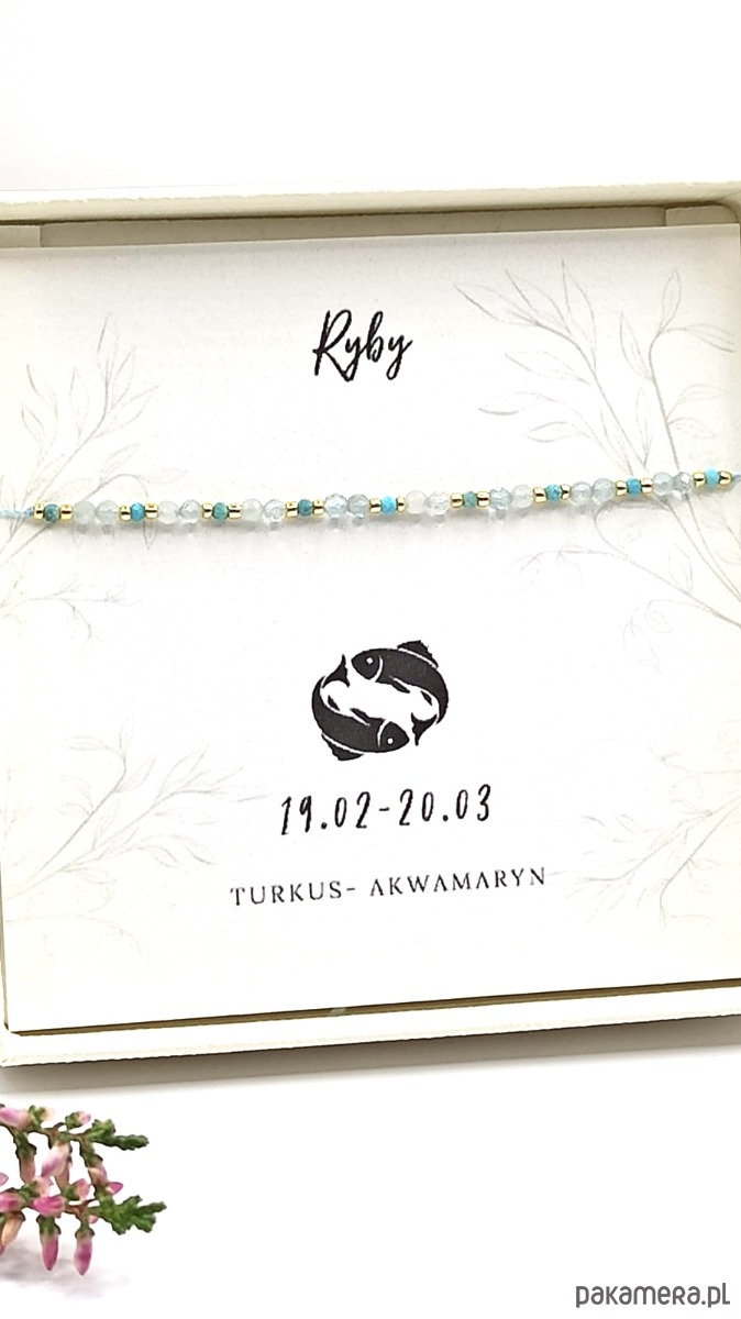 Delikatna bransoletka z kamieni dla Ryb. Drobny, kobiecy dodatek. Lekko układa się na ręce, wygodne zapięcie na sznureczku pozwala dopasować bransoletkę do rozmiaru nadgarstka.