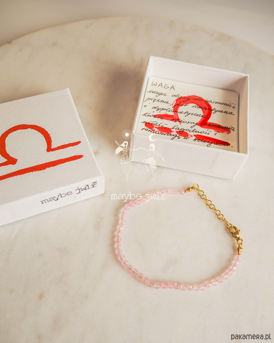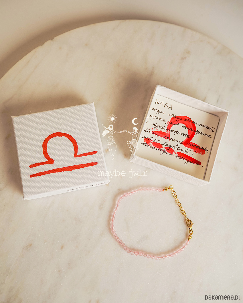 Kolekcja powstała ze starannie wybranych kamieni naturalnych, dopasowanych do znaku zodiaku, tak aby mu najbardziej odpowiadała. Bazą bransoletki jest naturalna, jedwabna nitka. Całość chowa się w ręcznie malowanym pudełeczku, wraz z ręcznie wypisaną etykietą.