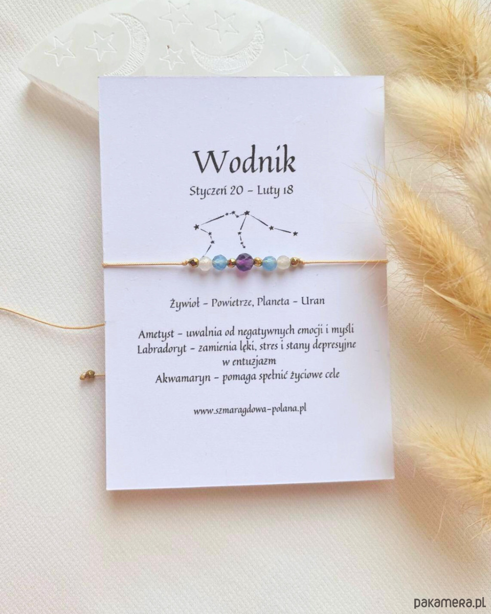 Bransoletka zodiakalna Wodnik to subtelna, ręcznie wykonana biżuteria z naturalnych kamieni, stworzona specjalnie dla osób urodzonych pod znakiem Wodnika. Wodnik symbolizuje niezależność, kreatywność, otwarty umysł i oryginalność. Ta minimalistyczna bransoletka powstała jako delikatny talizman wspierający intuicję, wyrażanie siebie i harmonię w codziennym życiu.