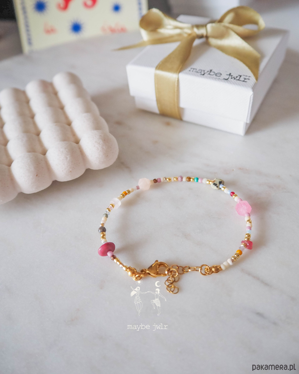 Bransoletka jest uniwersalna – posiada długość 16 cm + 3 cm regulowanego przedłużenia, dzięki czemu idealnie dopasowuje się do nadgarstka.
