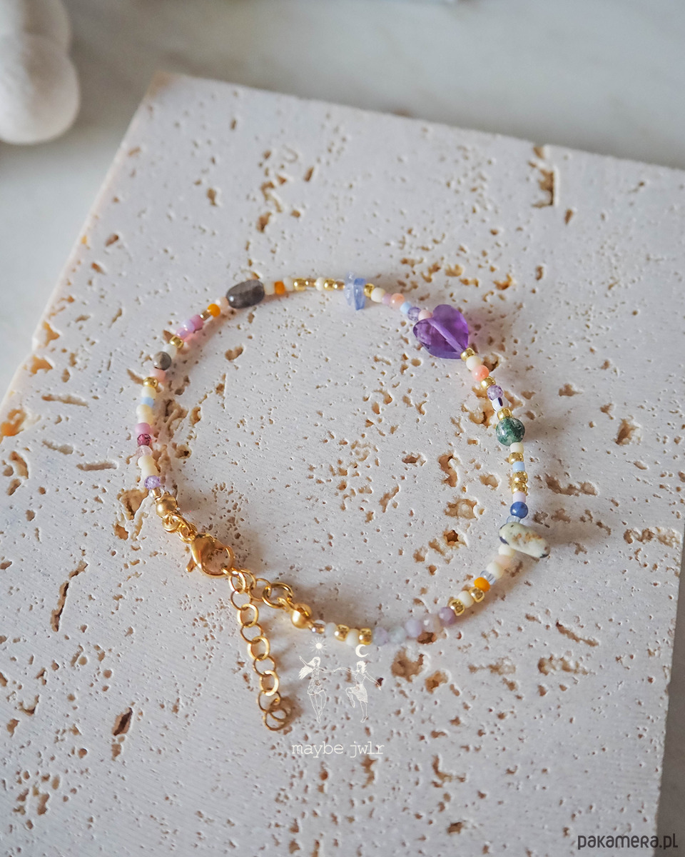 Kamienie: kamień słoneczny, agat indyjski, fluoryt, ametyst, tanzanit, jaspis