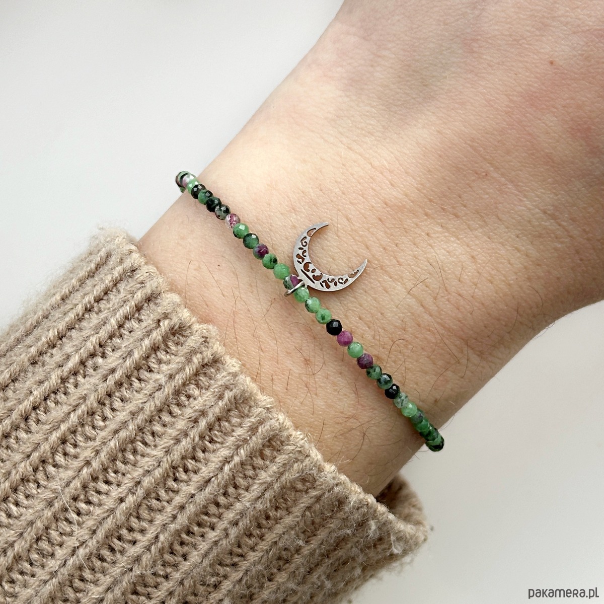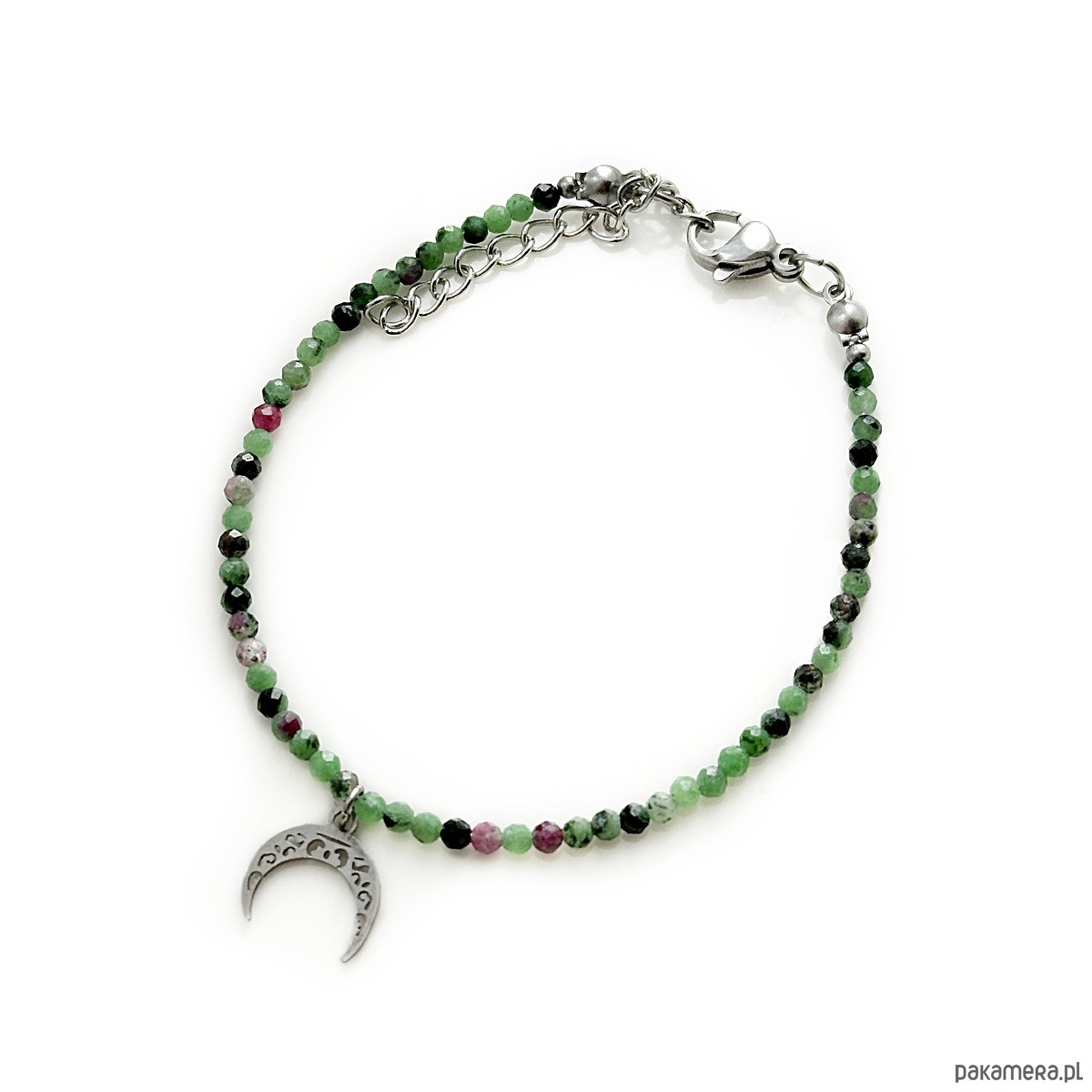 Bransoletka z kamieniami zoisytu z rubinem, metalowe elementy są ze stali szlachetnej/chirurgicznej.