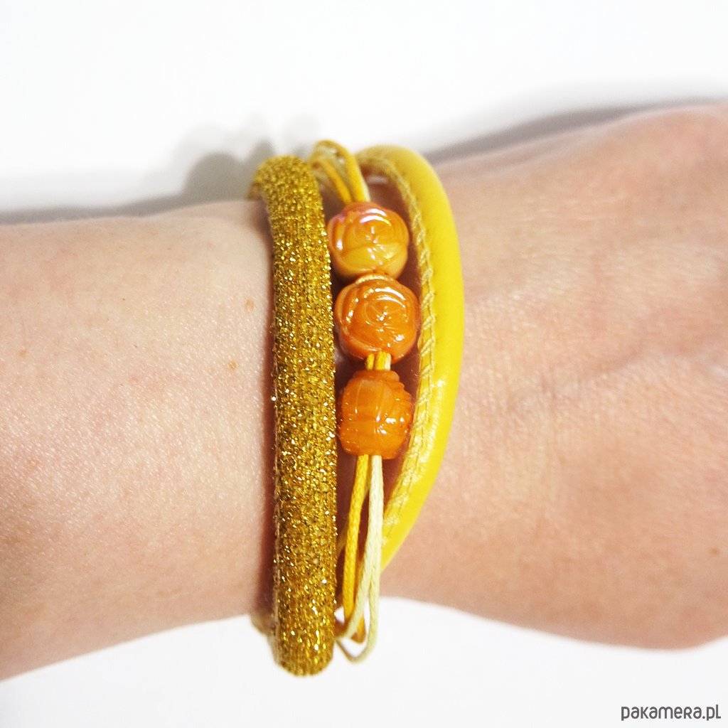 Bransoletka wygląda jak kilka, pojedynczych dopasowanych do siebie bransoletek, piękny, unikatowy dodatek do wielu stylizacji.
