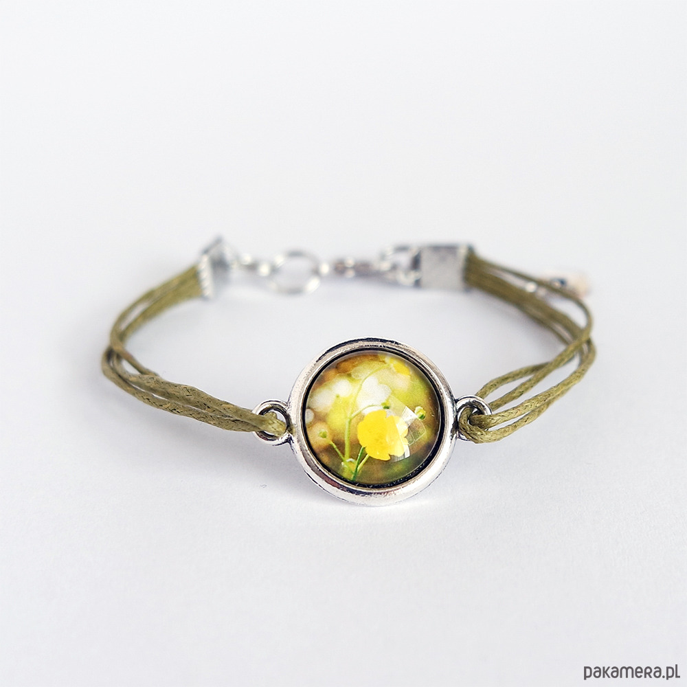 Bransoletka - Żółty kwiat - zielona, sznurki
