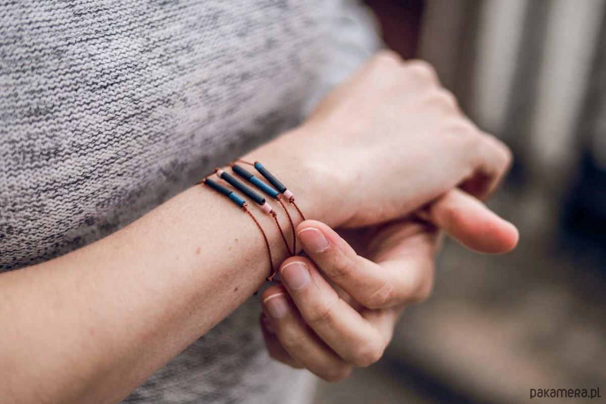 Rozmiar bransoletki można regulować za pomocą dwóch przesuwnych węzłów. Maks obwód to 22 cm.