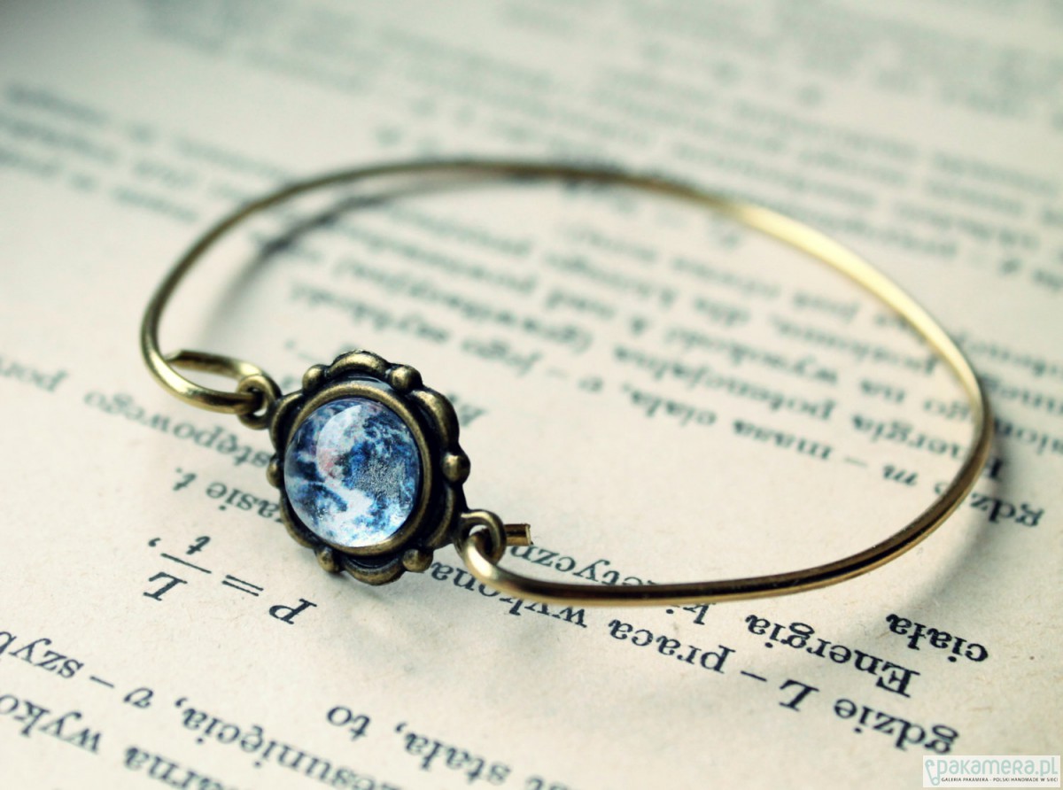 Bransoletka z grafiką Ziemi o średnicy 10mm pod błyszczącym szklanym oczkiem. Bransoletka wykonana jest z mosiężnego drutu. Wspaniała na romantyczny prezent dla kogoś bliskiego, lub jako mała przyjemność dla siebie! Wykonywana na zamówienie, wysyłka w ciągu 5 dni roboczych. Jeżeli masz jakieś specjalne życzenia dotyczące wykonania - nie ma problemu! Skontaktuj się ze mną :). Biżuteria z grafiką nie jest wodoodporna - należy unikać kontaktu z wodą!