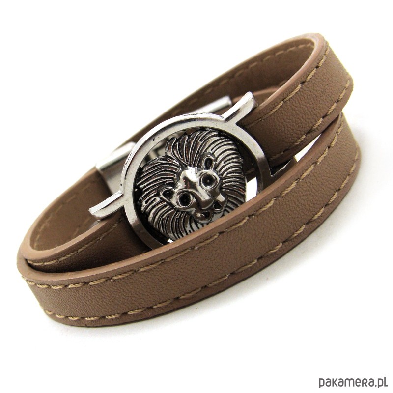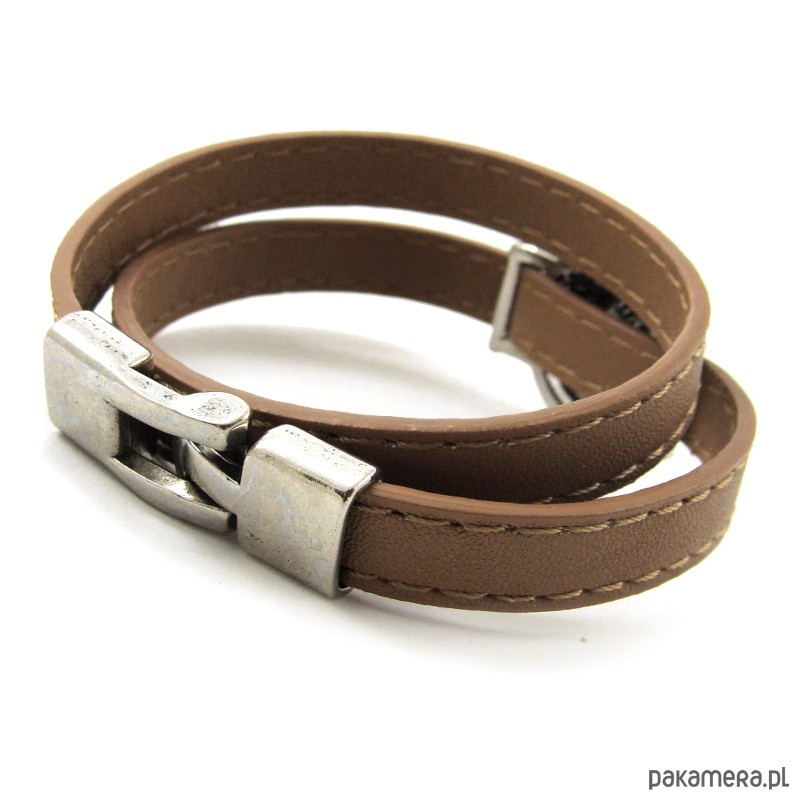 Bransoletka podwójnie oplatana wokół nadgarstka, wykonana z szerokiego rzemienia, elementów srebrzonych. Pasuje idealnie na nadgarstek o obwodzie: 19 cm. JEŻELI INTERESUJE PAŃSTWA BRANSOLETKA INNE DŁUGOŚCI PROSZĘ O KONTAKT PRZED ZAKUPEM.