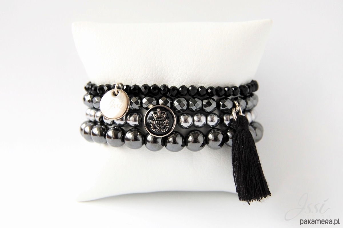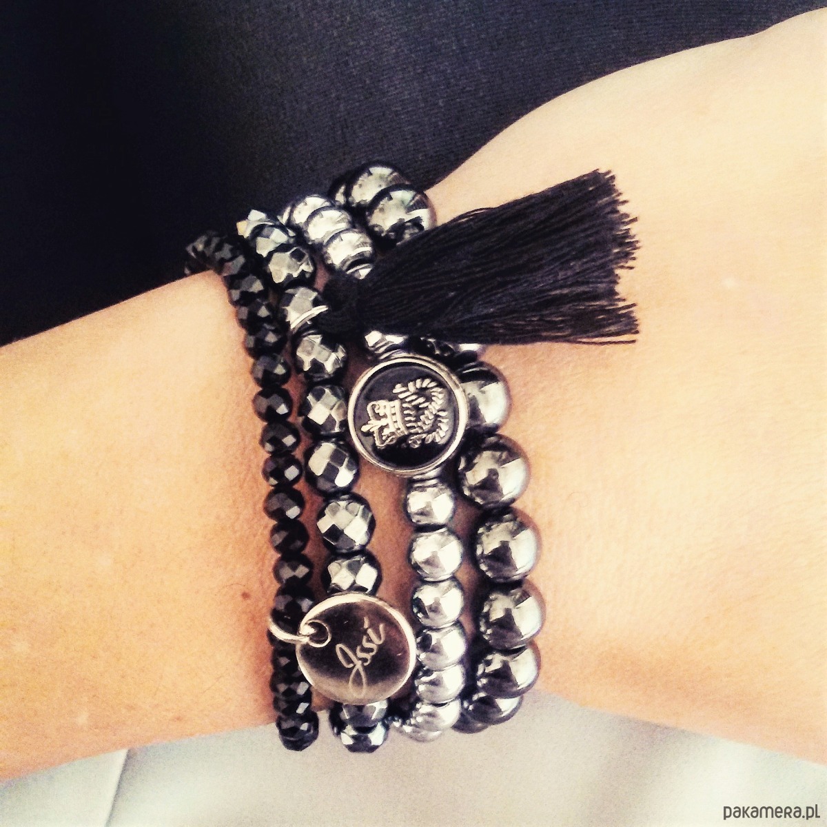 Zestaw czterech bransoletek , wykonanych z kamieni naturalnych.