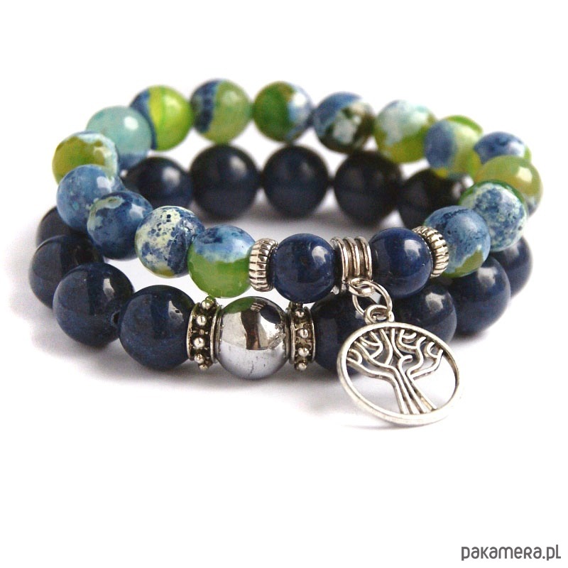 POMYSŁ NA PREZENT ;-) niezwykle efektowny komplet 2 bransoletek wykonanych z granatowego marmuru (12 i 10mm) niebiesko-zielono-białego FASETOWANEGO agatu (10mm), który idealnie się z nim komponuje. dodatkowo: metalowe elementy w kolorze srebra - zawieszka, ozdobne pierścienie oraz kula srebrnego hematytu (12mm)... AGAT - kamień równowagi - fizycznej, emocjonalnej i intelektualnej. Harmonizuje; działa uspokajająco, dodaje pewności siebie..... obw. wewnętrzny bransoletek: 16,7cm.... ZOBACZ CAŁĄ KOLEKCJĘ! ...... moja biżu zawsze podróżuje w ozdobnym opakowaniu handmade :D