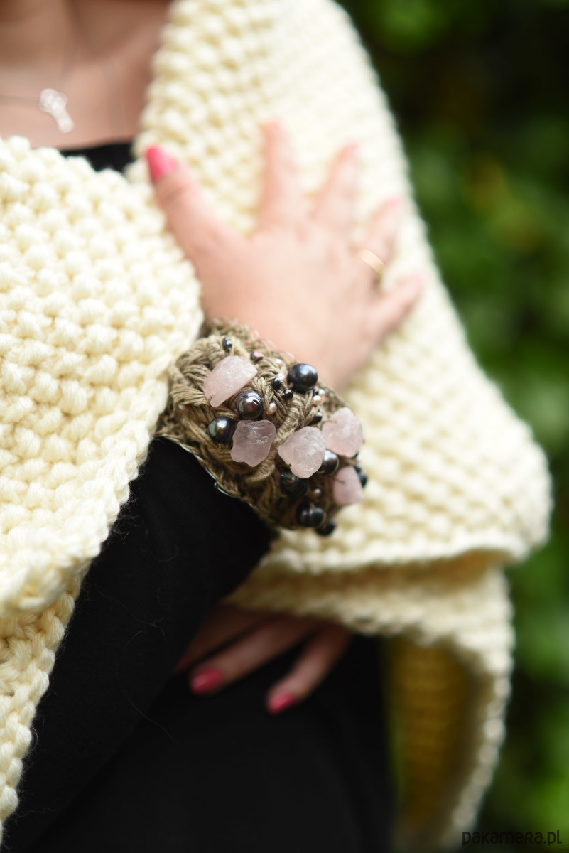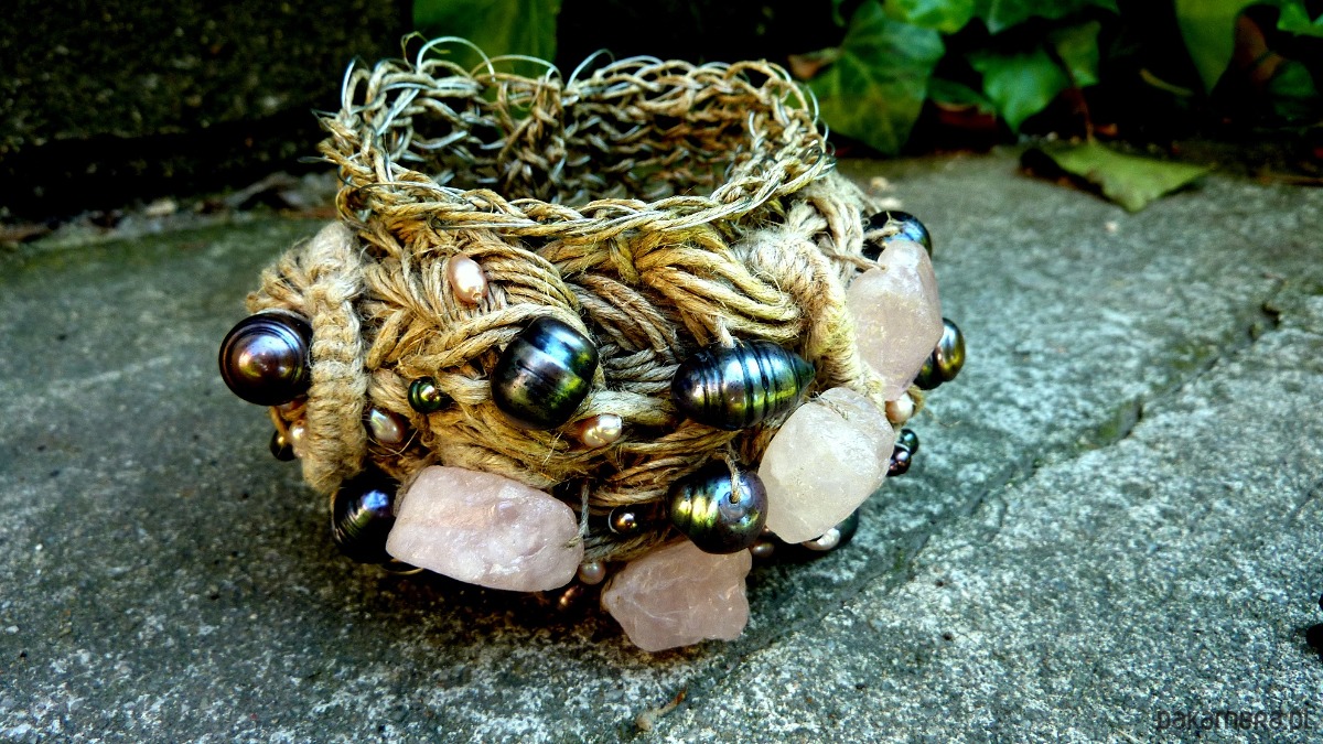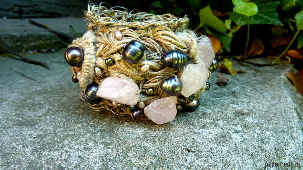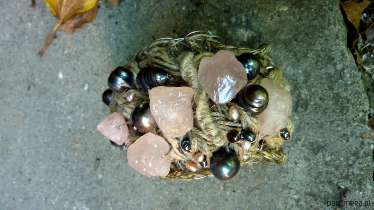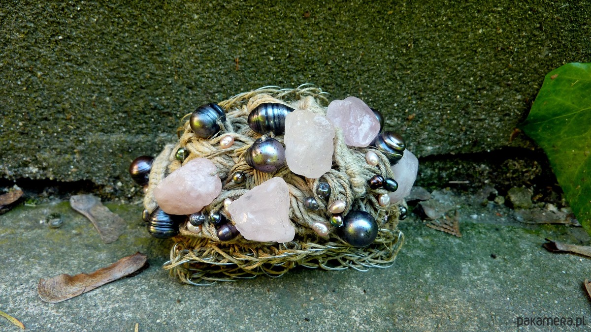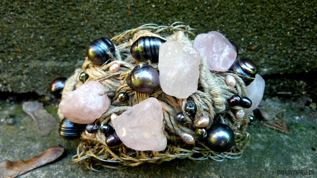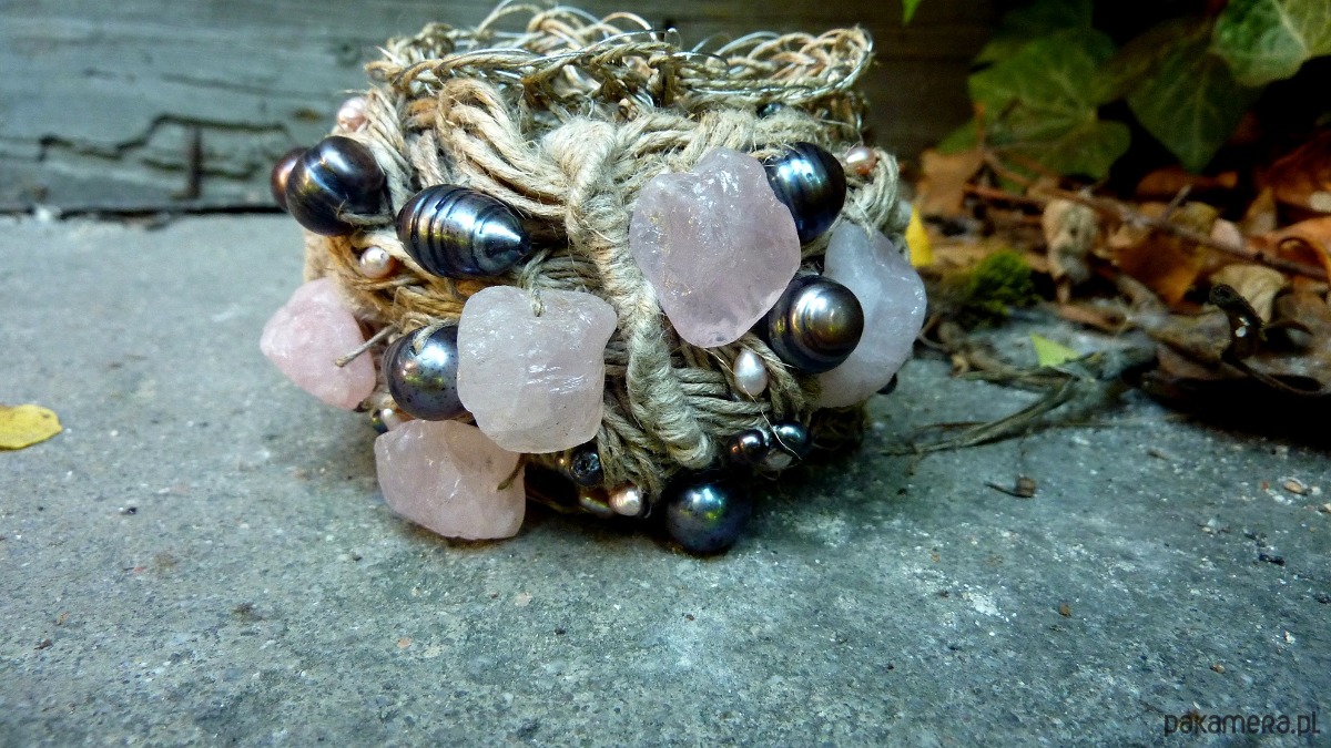 Użyłam bryłek kwarcu różowego i pereł rzecznych .
