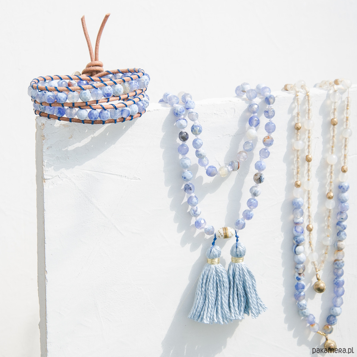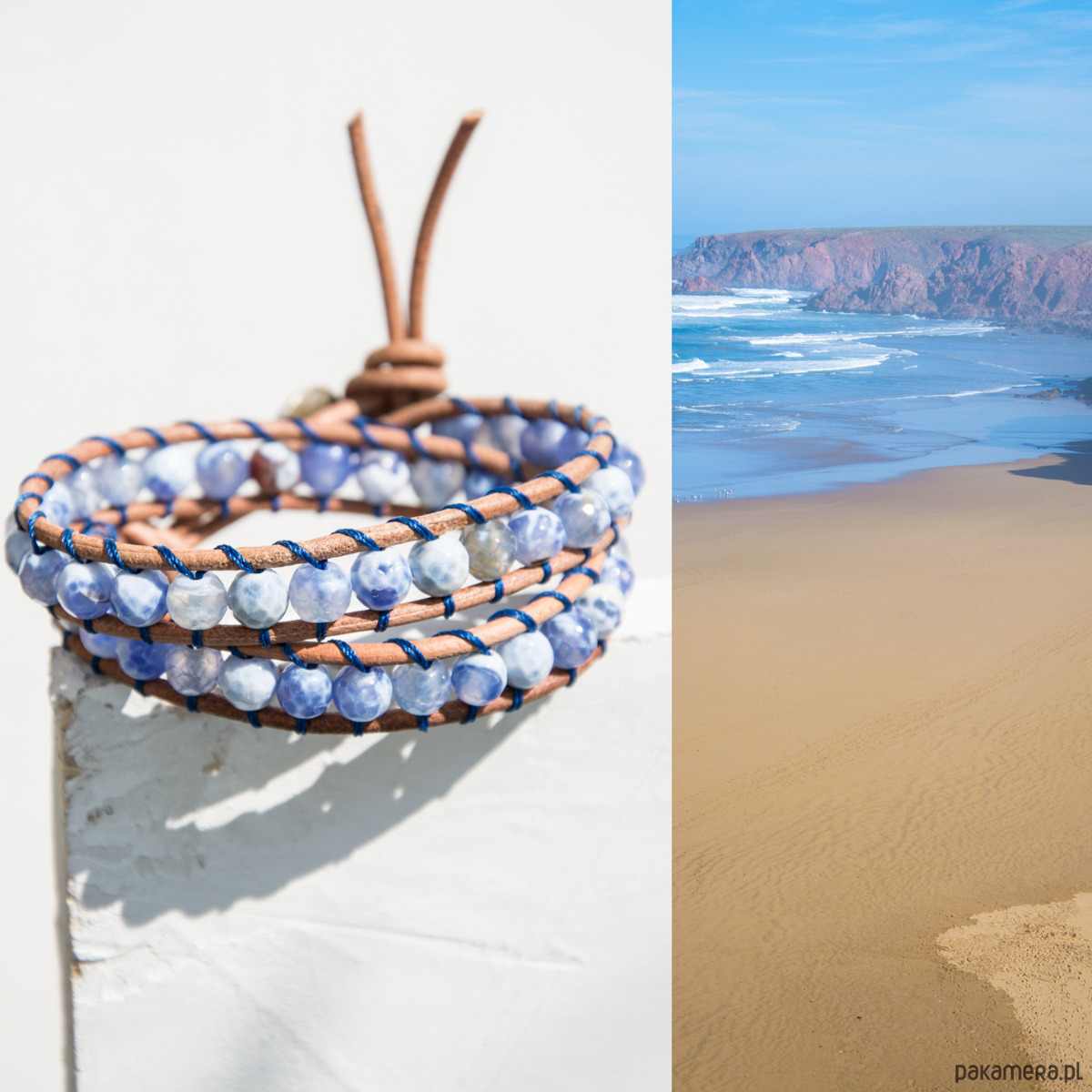 połączyliśmy półszlachetny kamień w tonacji spienionego falami morza ze skórą w odcieniu piasku