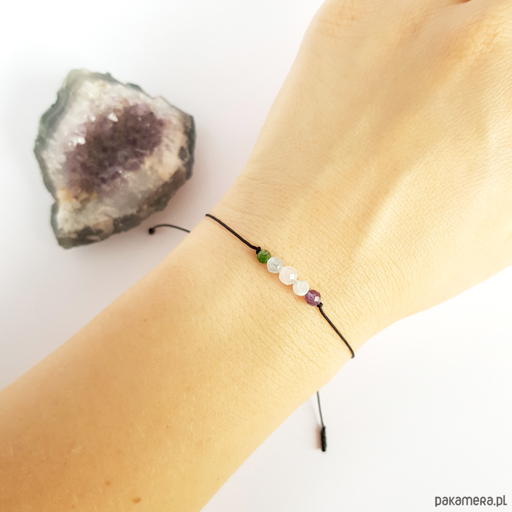 - Rodzaj kamienia: ametyst, kamień księżycowy, kwarc różowy, akwamaryn, diopsydu chromowego