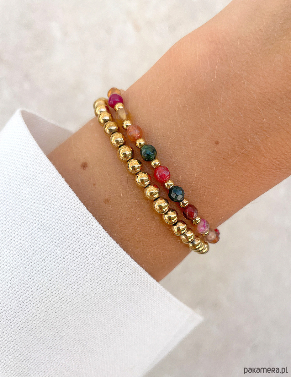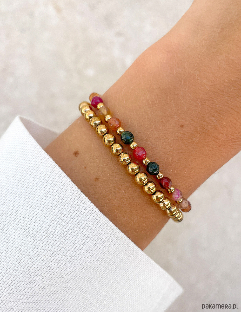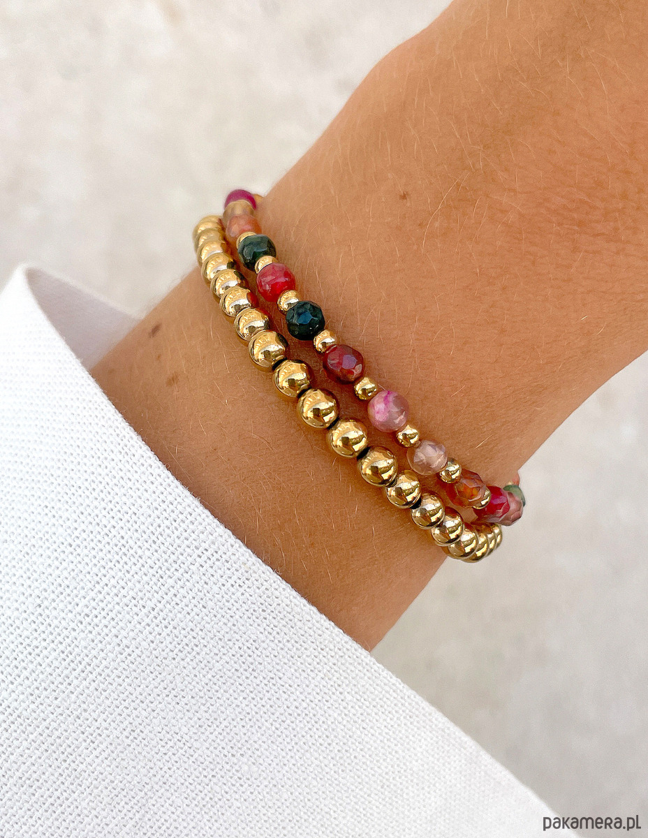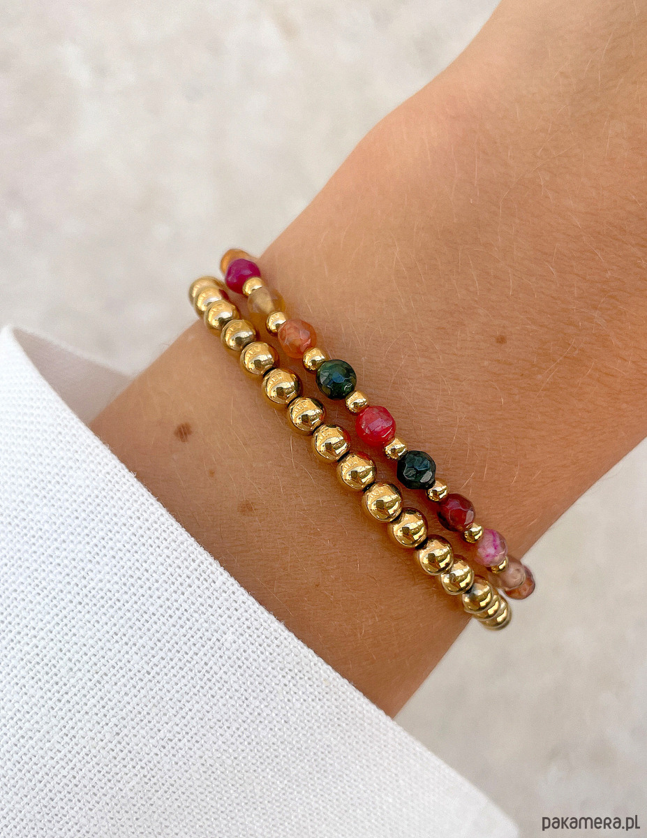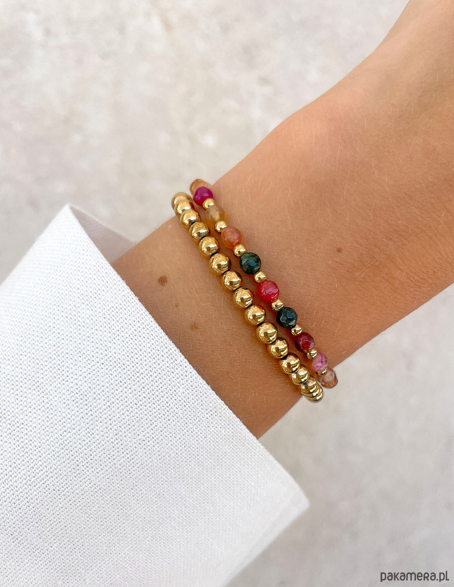 Odkryj siłę koloru i blask złota w tym energetycznym zestawie dwóch bransoletek. To propozycja dla kobiet, które cenią sobie różnorodność i wyraziste, naturalne dodatki.