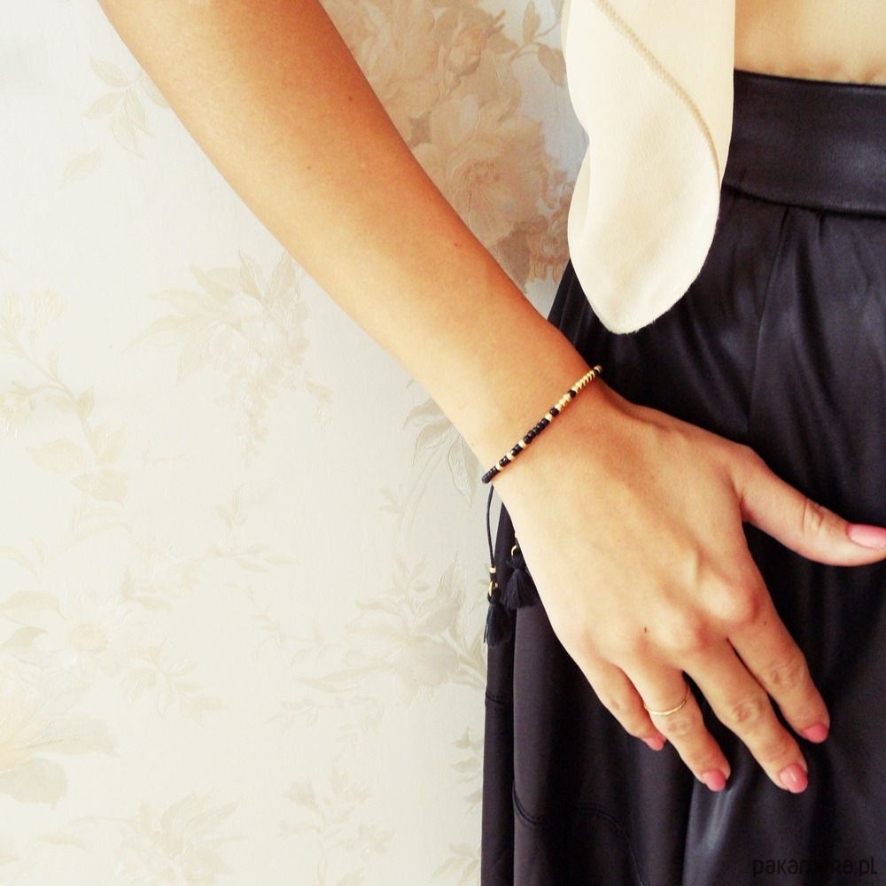 Bransoletki zostały wykonane ze sznurów jubilerskich oraz z drobnych, szklanych korali TOHO produkcji japońskiej, które cechuje bardzo wysoka jakość oraz ich idealny kształt. Dodatkowo, koraliki nie tracą swojego koloru ani się nie ścierają. Zdjęcie na ręce jest poglądowe i odzwierciedla wielkość bransoletki.