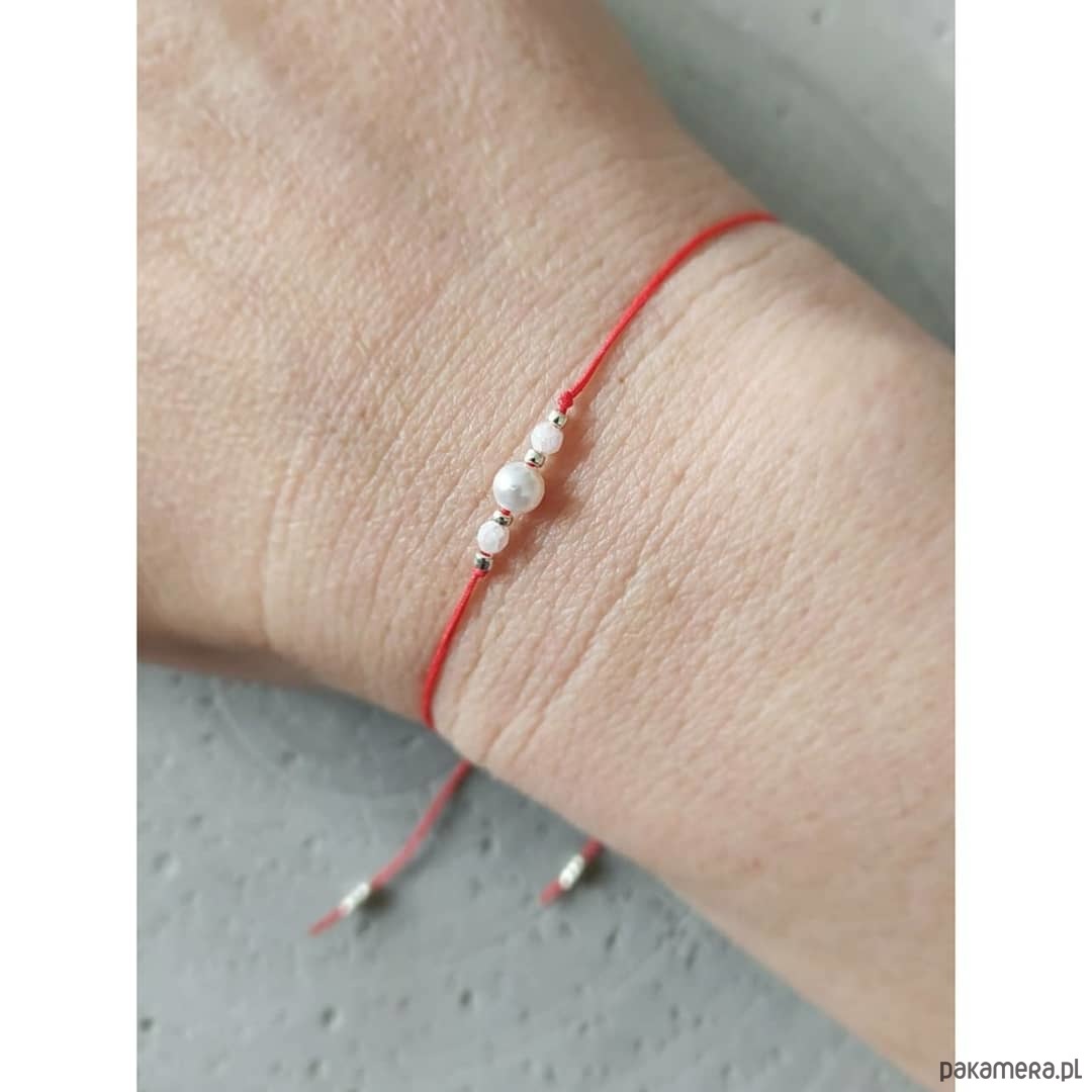 Wykonana z wytrzymałej nici jubilerskiej w czerwonym kolorze, malutkiej Perły Majorka, kamieni Jadeit oraz koralików ze szkła japońskiego w odcieniu srebra. Czerwony sznureczek z perełką "na szczęście". Piękna bransoletka dla nowoczesnej kobiety lubiącej subtelną biżuterię.