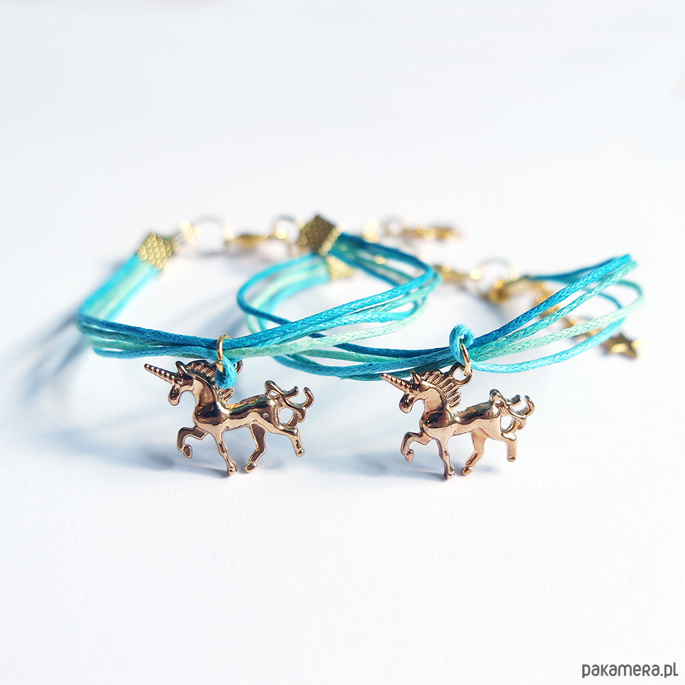 Niezwykłe, subtelne bransoletki z piękną metalową zawieszką w kształcie jednorożca.