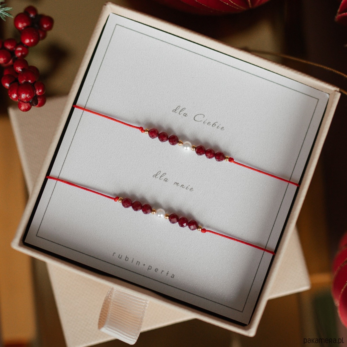 Wyjątkowe bransoletki przyjaźni, dla Ciebie i bliskiej Ci osoby. Będą nie tylko piękną ozdobą, ale też symbolicznym i wzruszającym podarunkiem. Głęboka czerwień rubinu, symbolizująca miłość, energię i pasję łączy się z delikatnością i czystością perełek, które od wieków kojarzone są z harmonią, mądrością i wewnętrznym spokojem.