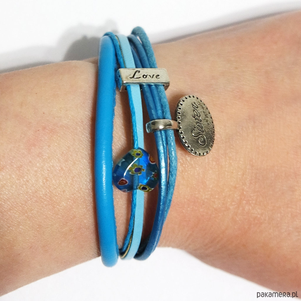 Bransoletki zrobione są z rzemieni ze skóry ekologicznej, naturalnej, sznurka oraz przekładek i koralika.
