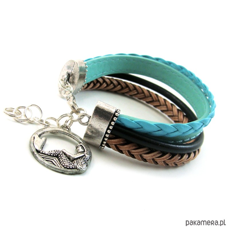 Bransoletka wykonana z rzemieni skórzanych, plecionych, ekologicznych, elementów w kolorze srebra. Odpowiednia na nadgarstek o obwodzie 15- 17 cm Jeżeli interesuje Państwa inna długość prosimy o kontakt przed zakupem.