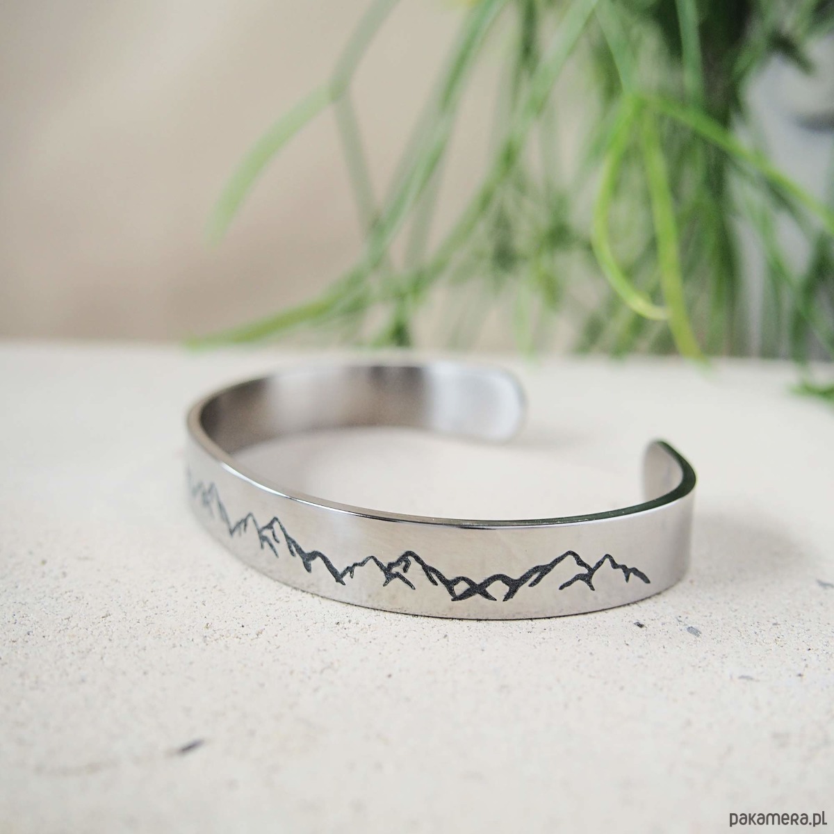 Szersza wersja naszej bransoletki z wygrawerowanymi górami. Wzór dla kobiet i mężczyzn.
