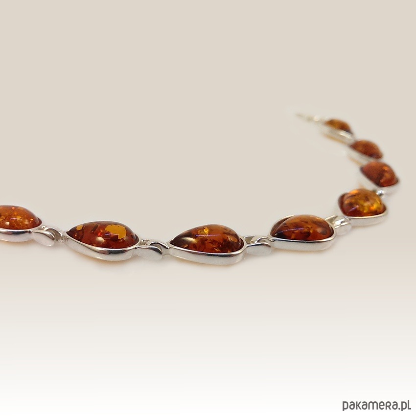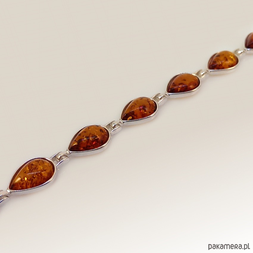 Modny bransoletka z bursztynem wykonane ze srebra próby 925.