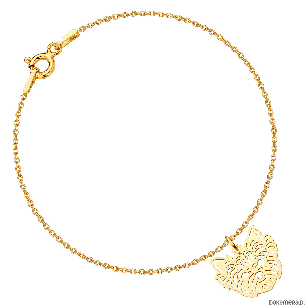 Bransoletka została wykonana z łańcuszka oraz zawieszki w kształcie yorka.
