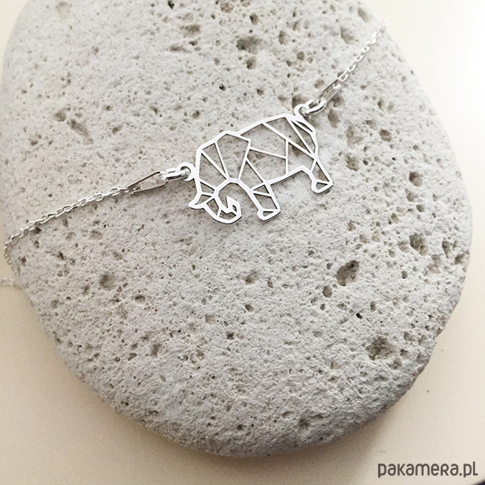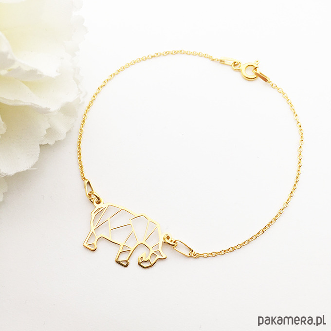 Unikatowa bransoletka z pięknym geometrycznym elementem w kształcie słonia , inspirowana sztuką origami. Unikalny design, piękne wykonanie. Bransoletka jest delikatna i efektowna. Wykonana ze srebra próby 925 . Dostępna złocona 24 k złotem.