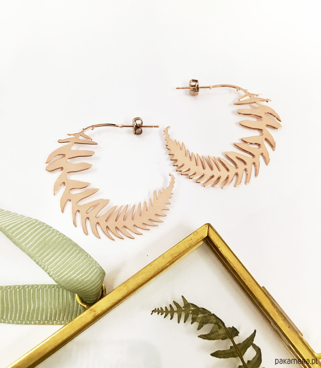 Kolczyki Paprotki, tym razem w postaci wiszących dużych, ale delikatnych listków.