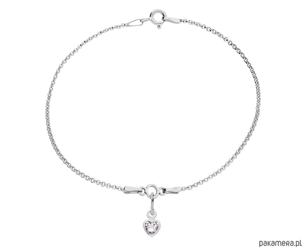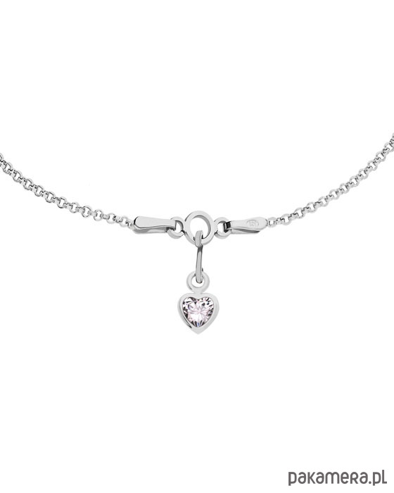 Srebrna bransoletka celebrytka z zawieszką serduszko wysadzaną białą cyrkonią.