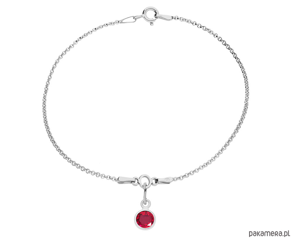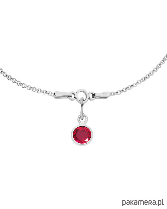 Srebrna bransoletka celebrytka z zawieszką z błyszczącą czerwono różową cyrkonią.