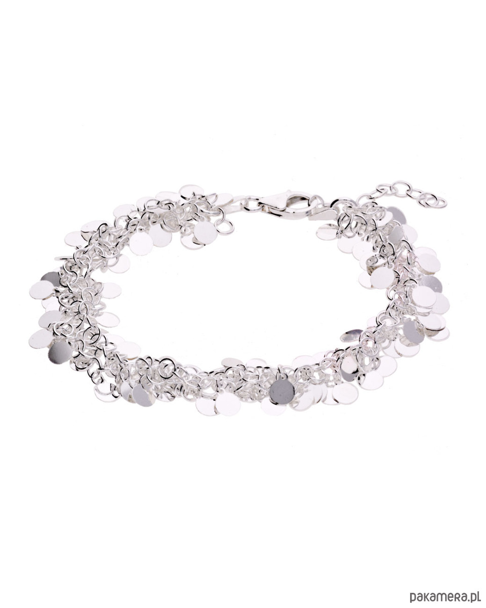 Gęsta bransoletka z blaszkami w kształcie kółek.