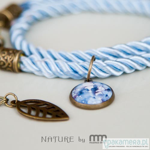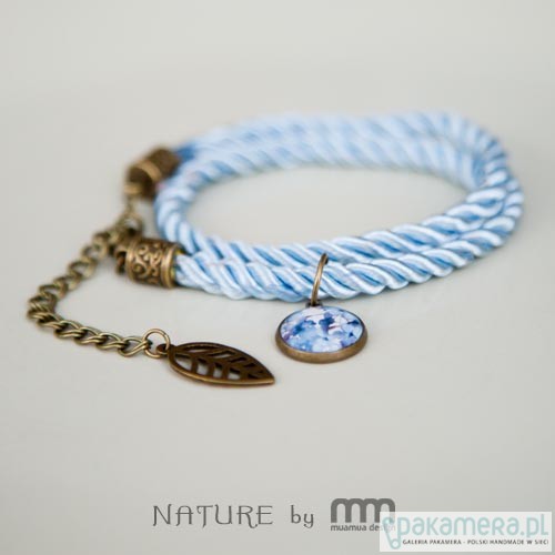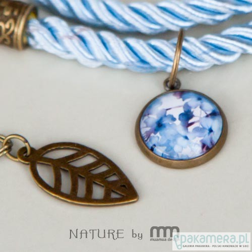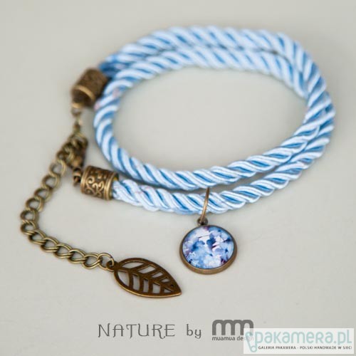 Bransoletka Blues to bardzo romantyczne, nostalgiczne i kobiece malutkie dzieło sztuki. Obrazek pod szkiełkiem to miniaturka autorskiej ilustracji. Bransoletka prezentuje się wspaniale, a zawieszka oraz medalion dopełniają romantyczną stylistykę . Możliwość regulowania bransoletki. Wymiary: Długość Bransoletki (bez łańcuszka): 37cm, długość łańcuszka do regulacji: 7 cm średnica grafiki 16 mm Wykorzystane materiały: baza medalionu i łańcuszka w kolorze antycznego brązu Sznurek skręcany z przędzy bawełnianej i włókien poliestrowych miniaturka autorskiej ilustracji drukowana na wysokiej jakości papierze fotograficznym Metoda produkcji: handmade by muamua design