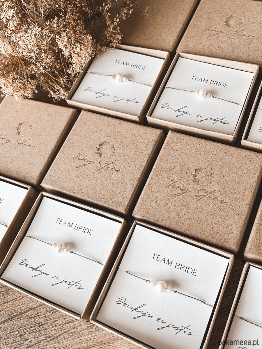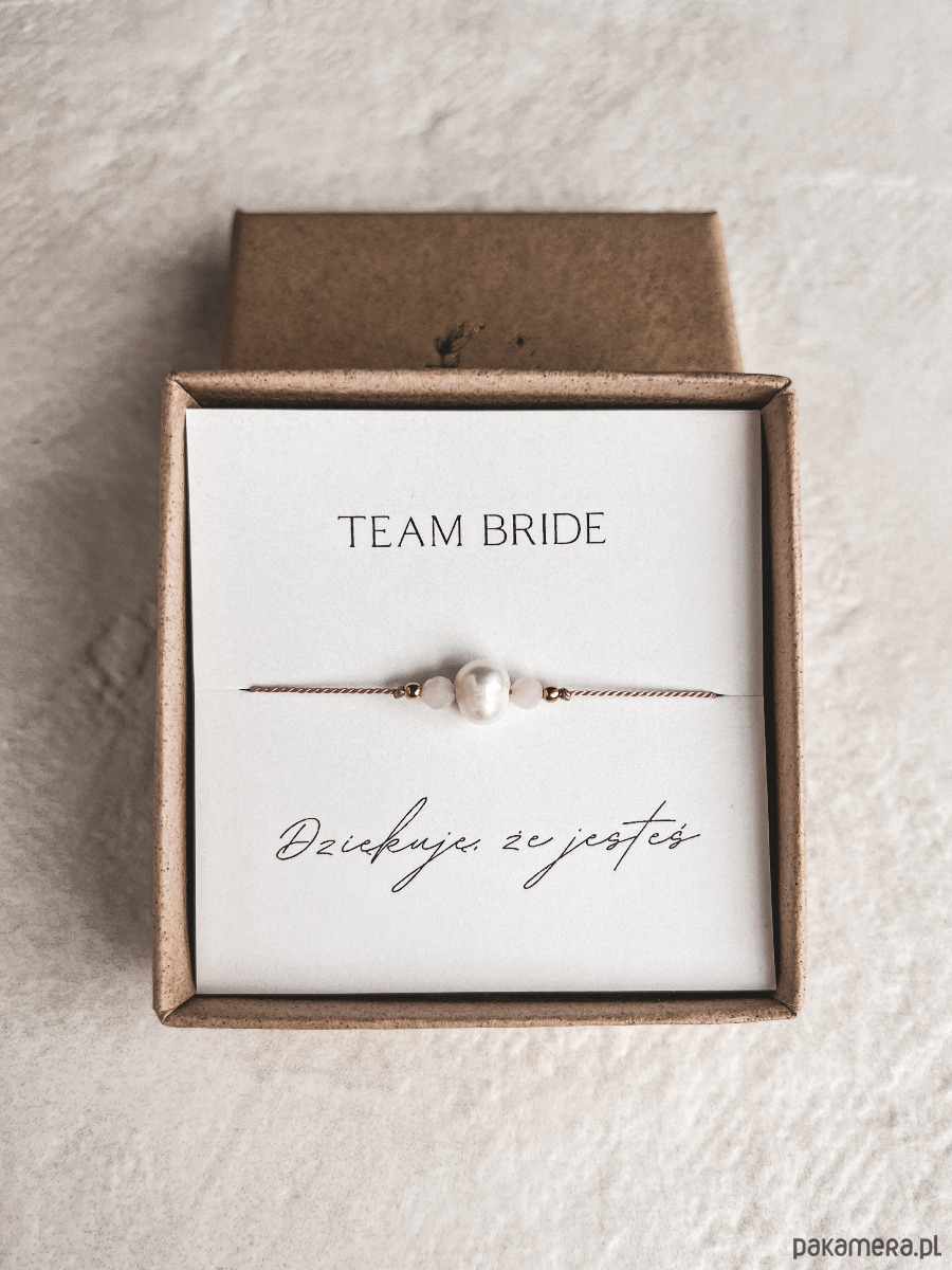 Standardowo do bransoletki dołączona jest dedykacja "Team Bride. Dziękuję, że jesteś.". Treść dedykacji można personalizować.