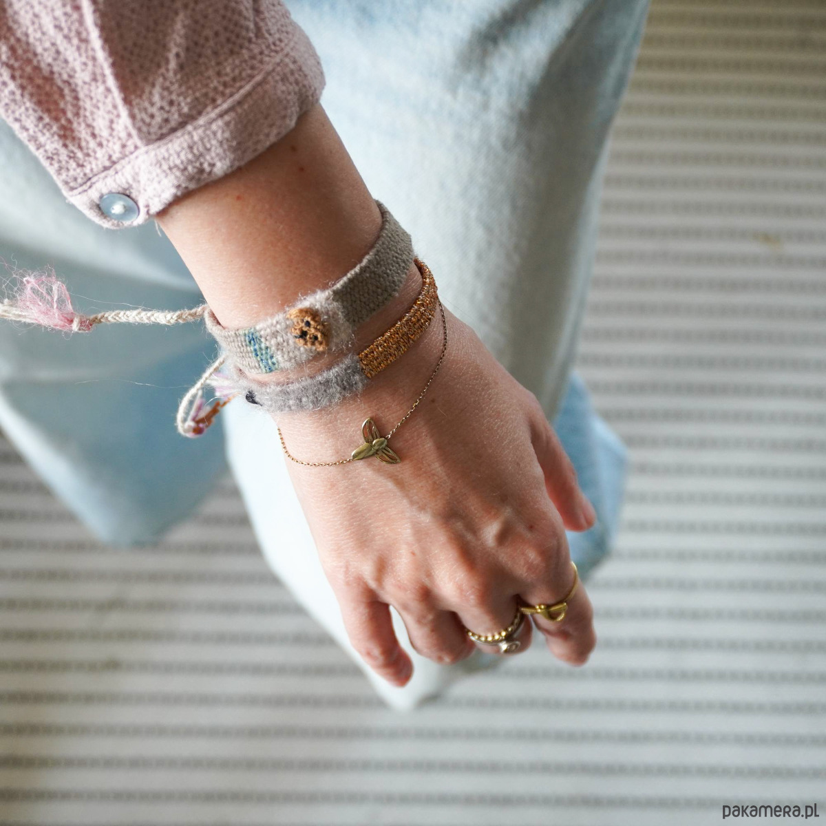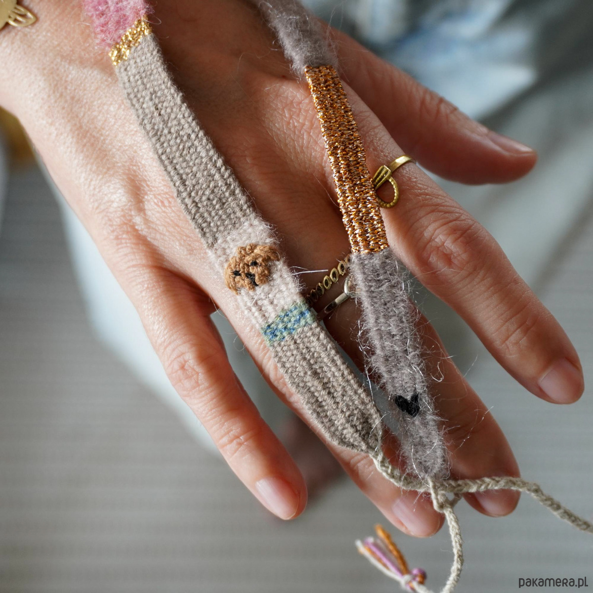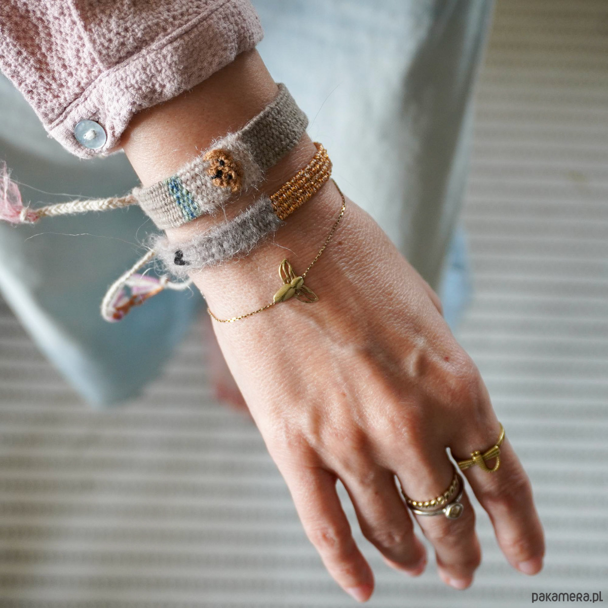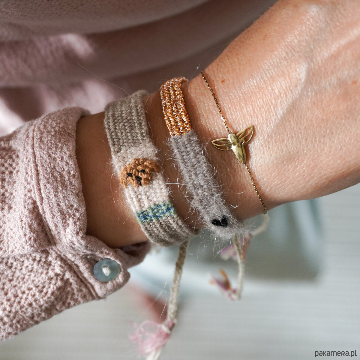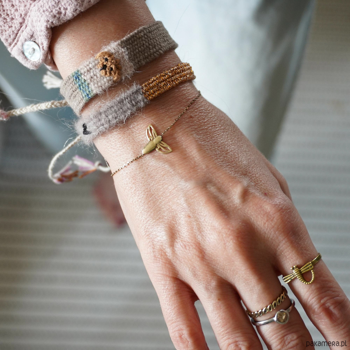 Prześliczny, unikatowy zestaw ręcznie tkanych bransoletek. Pierwsza jest z haftowanym pieskiem, druga z haftowanym serduszkiem i miedzianym, błyszczącym paseczkiem. Szerokość około 1 - 1,5 cm (z piesekiem) i 1 cm (z serduszkiem). Długość części tkanej 14, 15 cm. Bransoletki wiąże się zamodzielnie na supełek. Należy mocno go zaciskać lub zawiązać na 2 supełki dla pewności. Ten zestaw to idealny pomysł na prezent ♡.