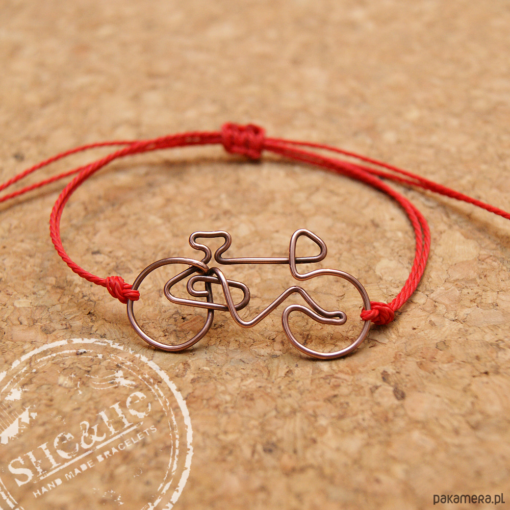 Bransoletka z drucianym rowerem, wybierz kolor sznurka, rozmiar regulowany na dowolny nadgarstek