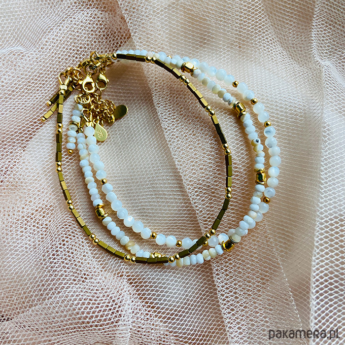 Bransoletki z masy perłowej , biały komplet
