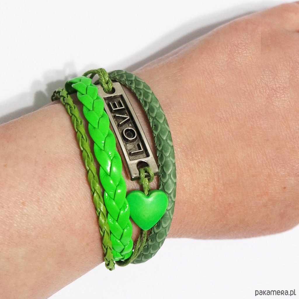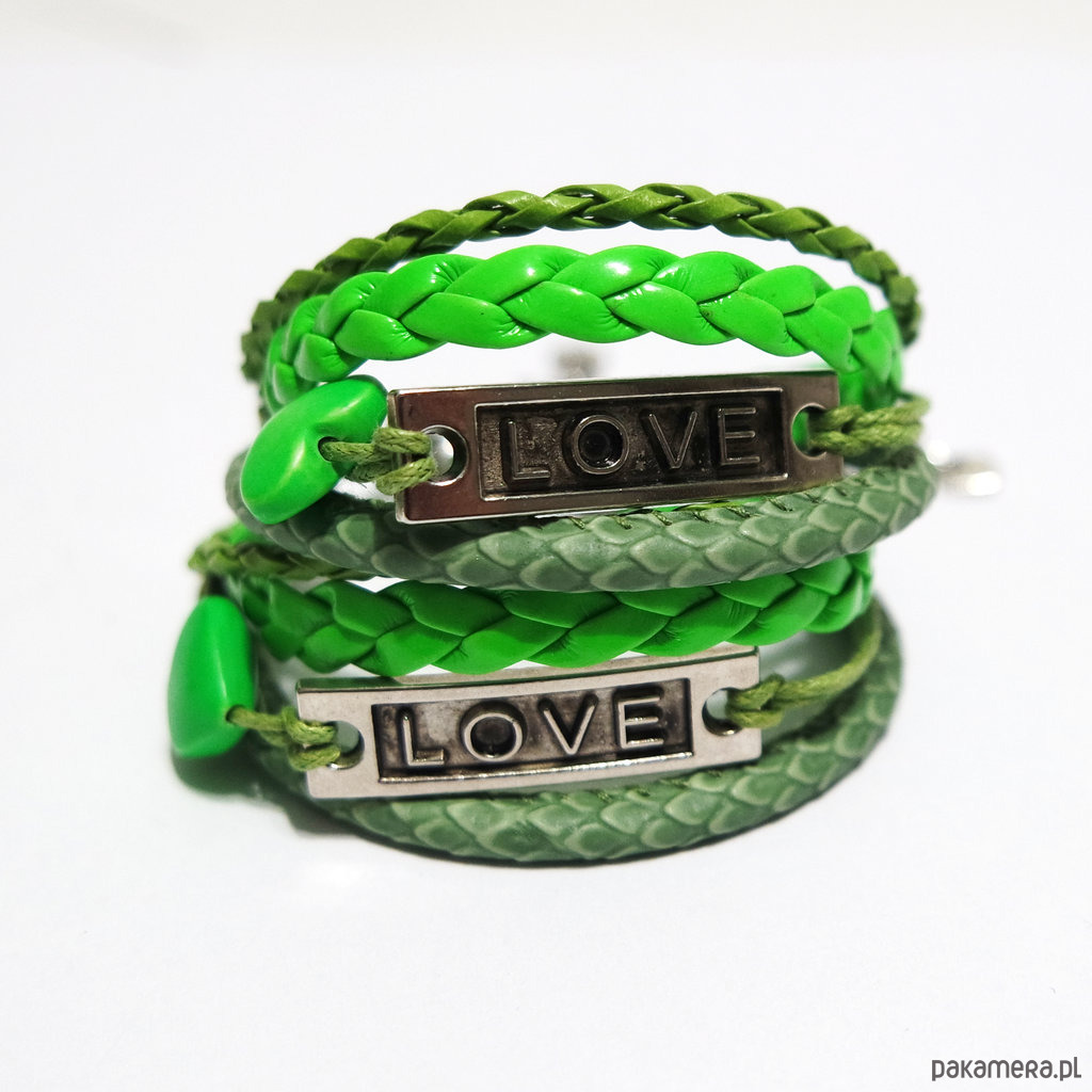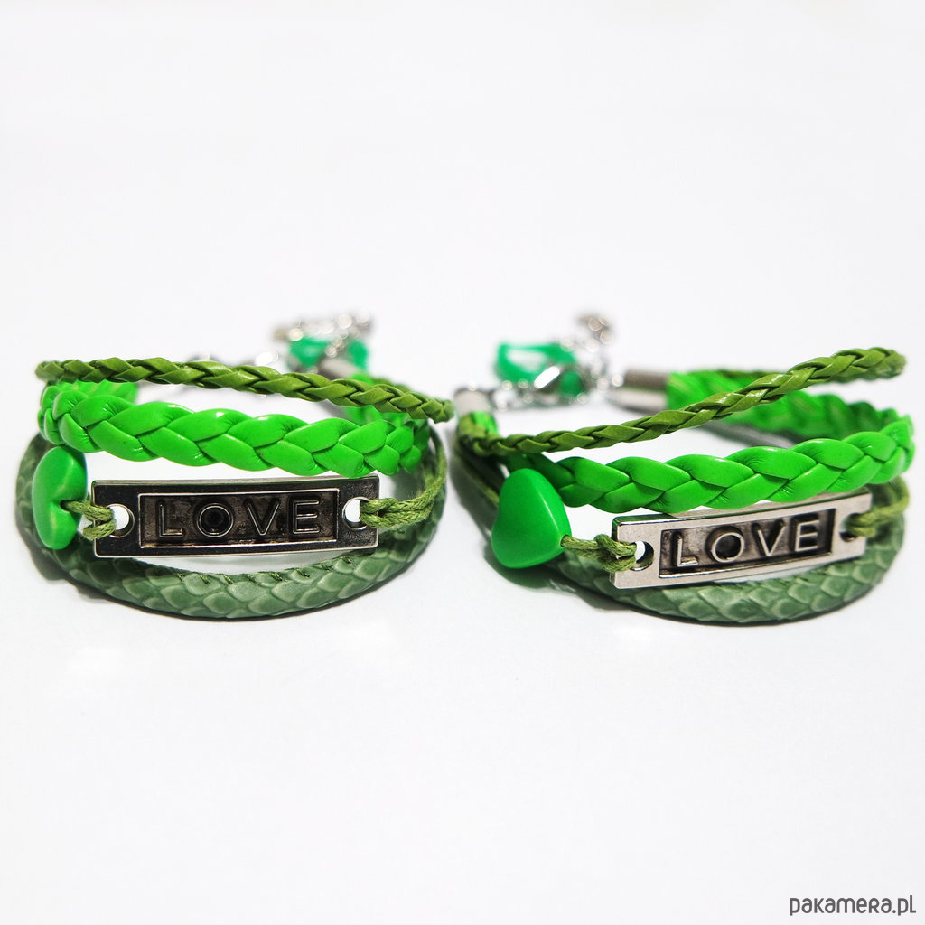 Bransoletki - Zielone Love - rzemienie, 2 sztuki