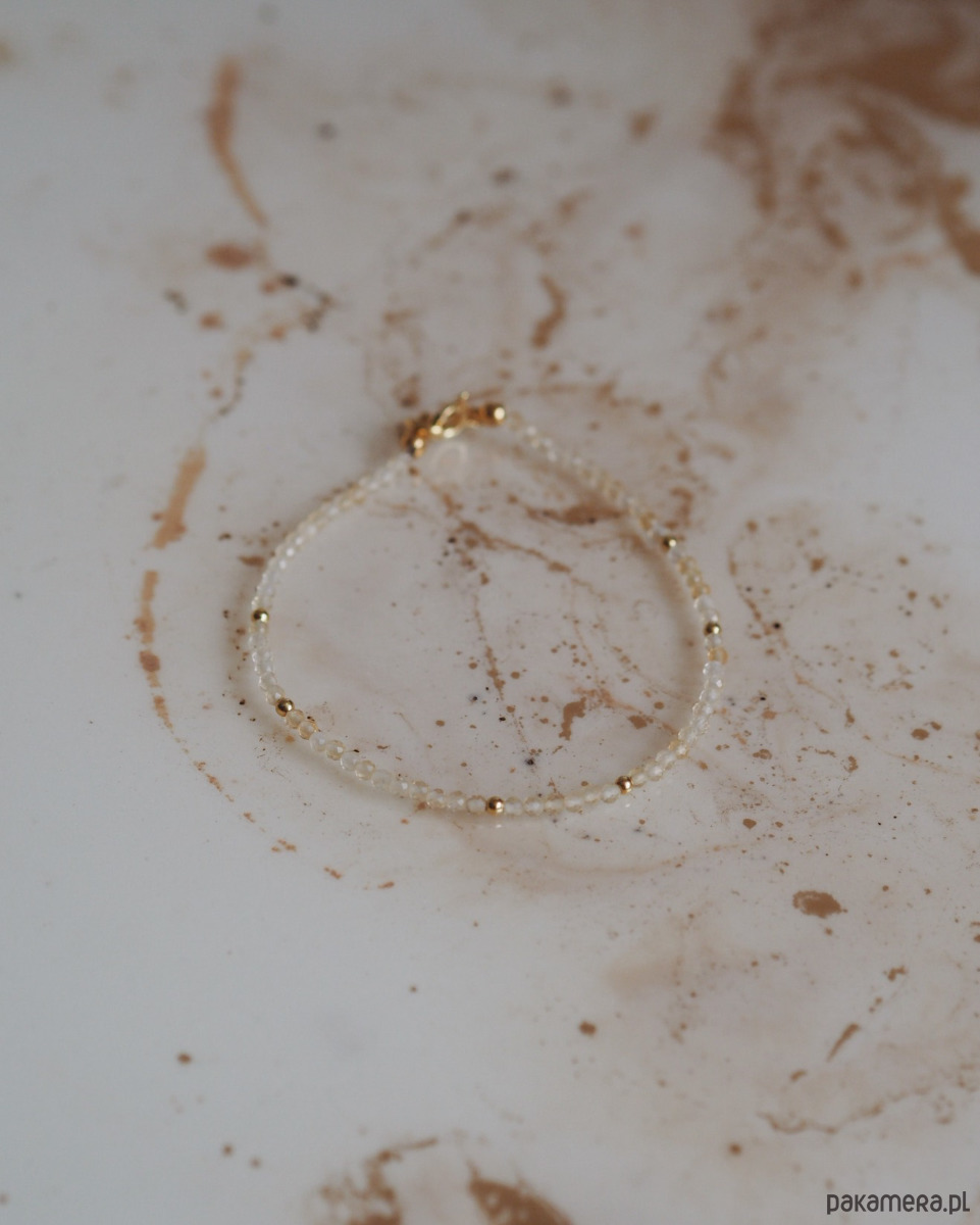 – bransoletka została wykonana z drobnych, naturalnych cytrynów o fasetowanym kształcie przeplatanych srebrnymi kulkami pozłacanymi 24 karatowym złotem