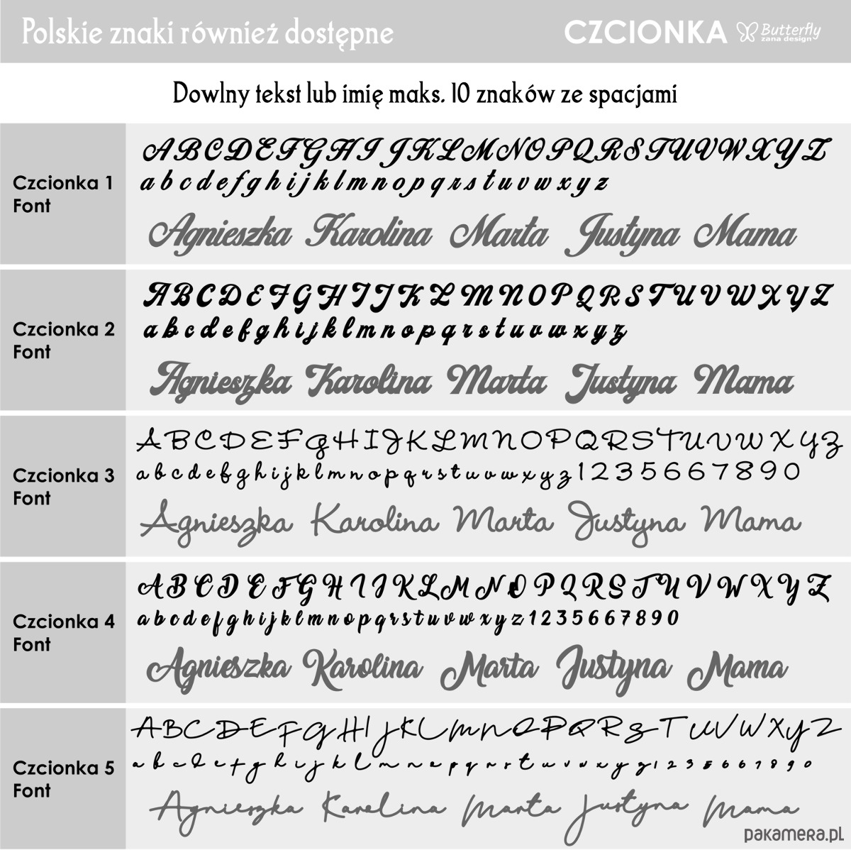 Podczas składania zamówienia w polu wiadomość dla sprzedającego wpisz imię lub słowo maks. do 10 znaków wraz ze spacjami, numer czcionki oraz długości bransoletki.