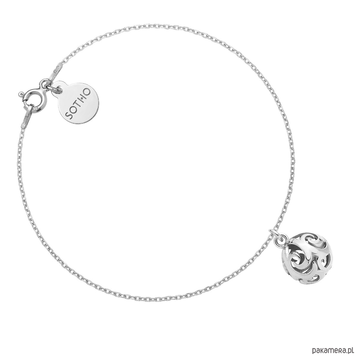 Srebrna bransoletka z kulą i zawieszką z logo marki. Całość wykonana ze srebra 925.