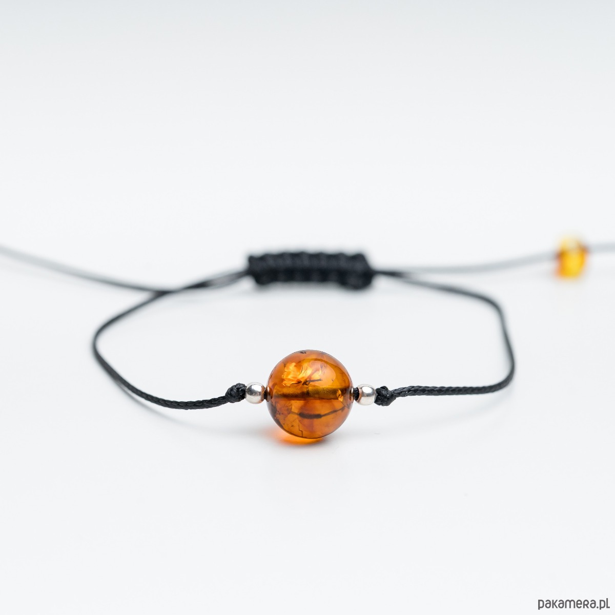 Bransoletka sznurkowa z bursztynem bałtyckim