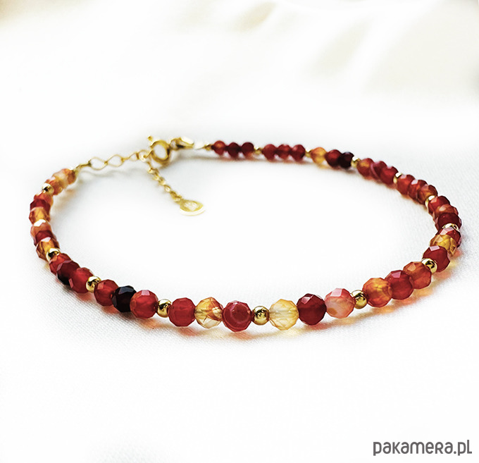 Ręcznie wykonana bransoletka z drobnych kamieni agatu w pięknych, naturalnych odcieniach brązu, czerwieni i rdzawej ziemi.