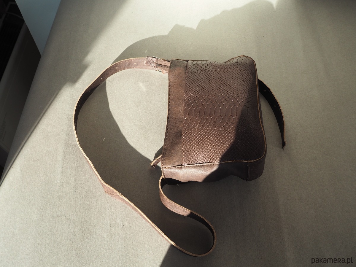 Skóra , szczególnie ta "wężowa' jest grubsza. Torebka ładnie trzyma kształt.