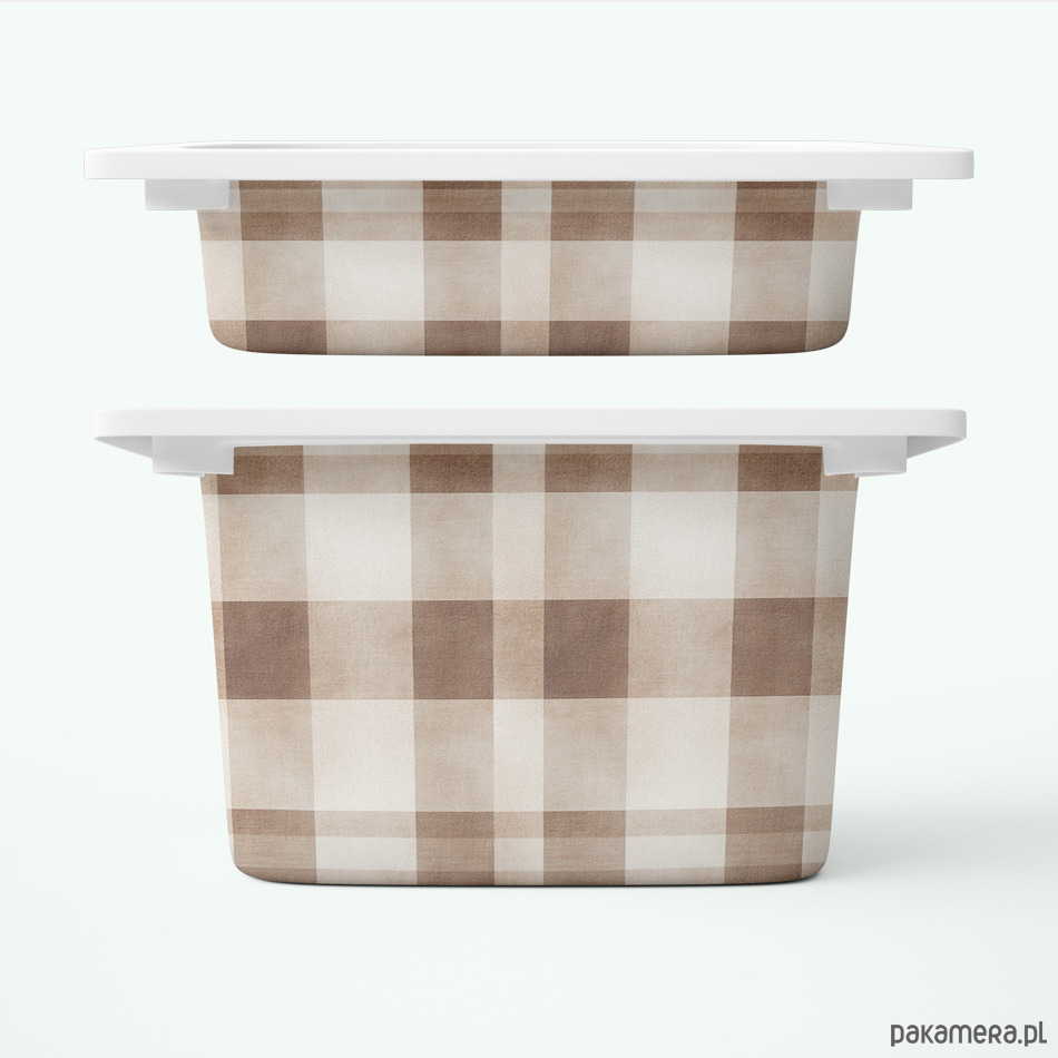 Brązowa kratka - naklejki na pojemniki na zabawki