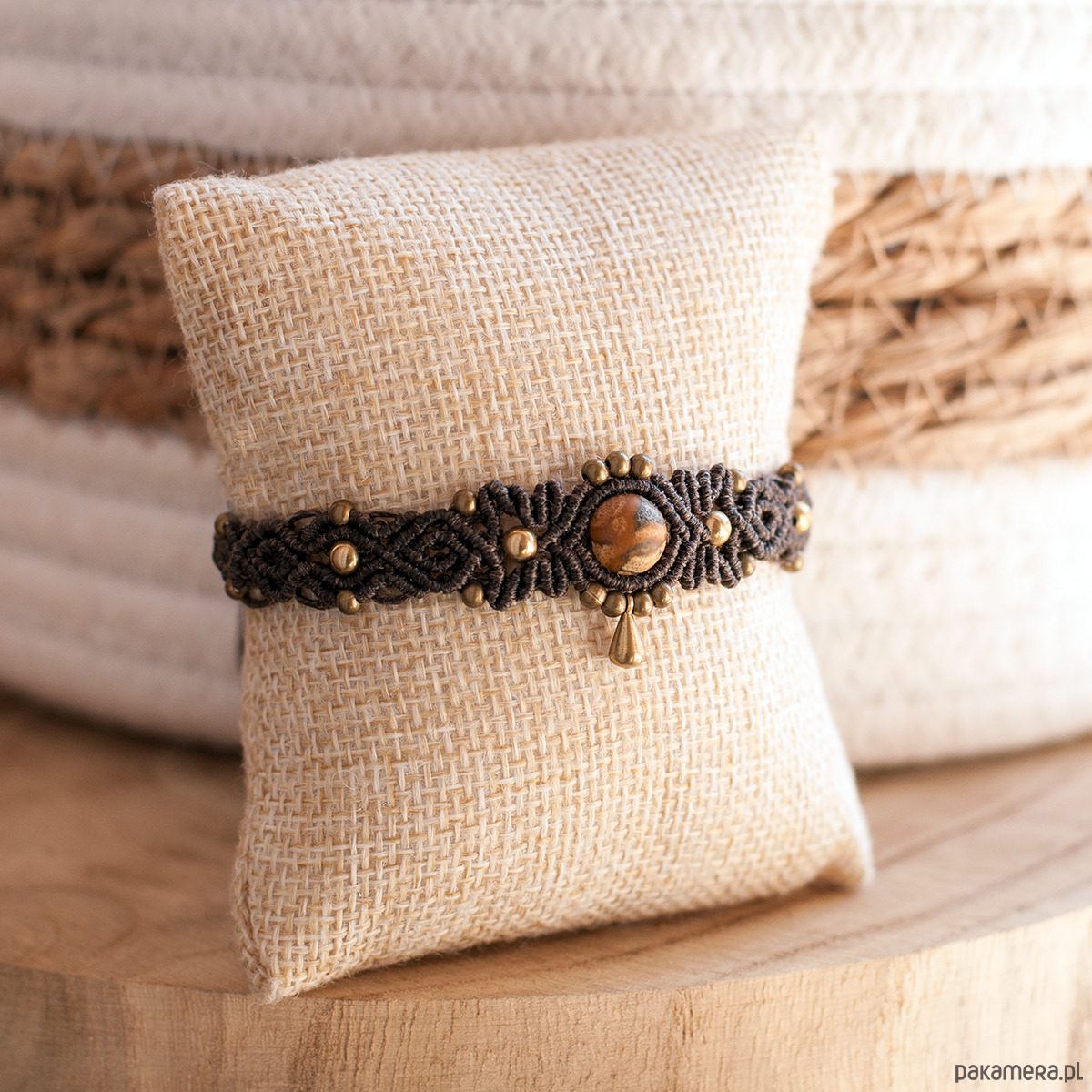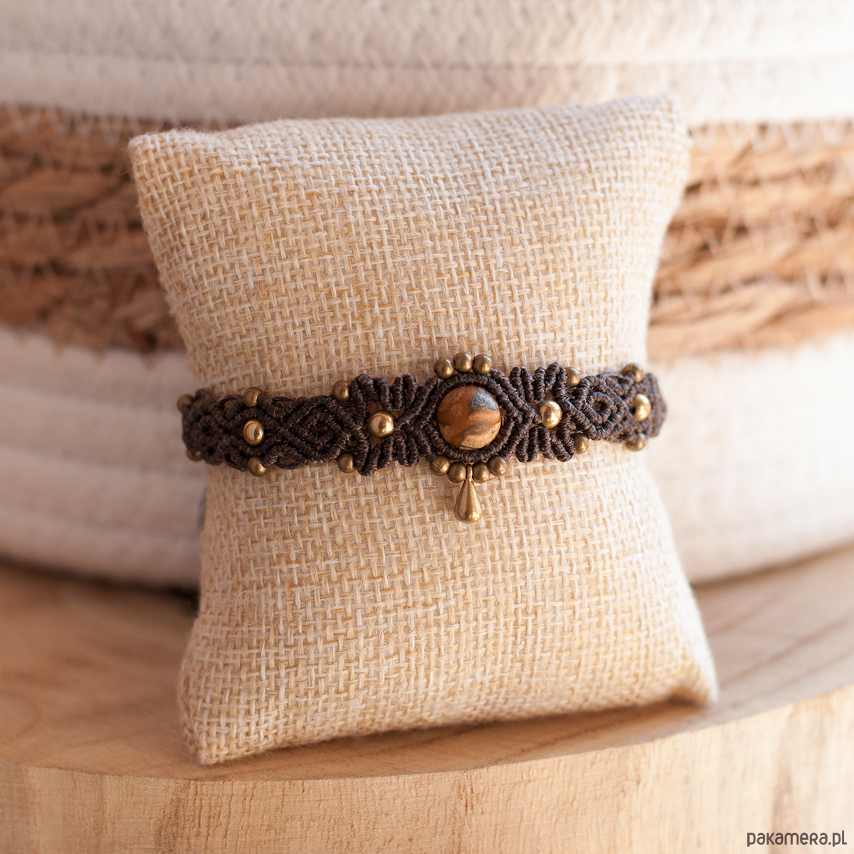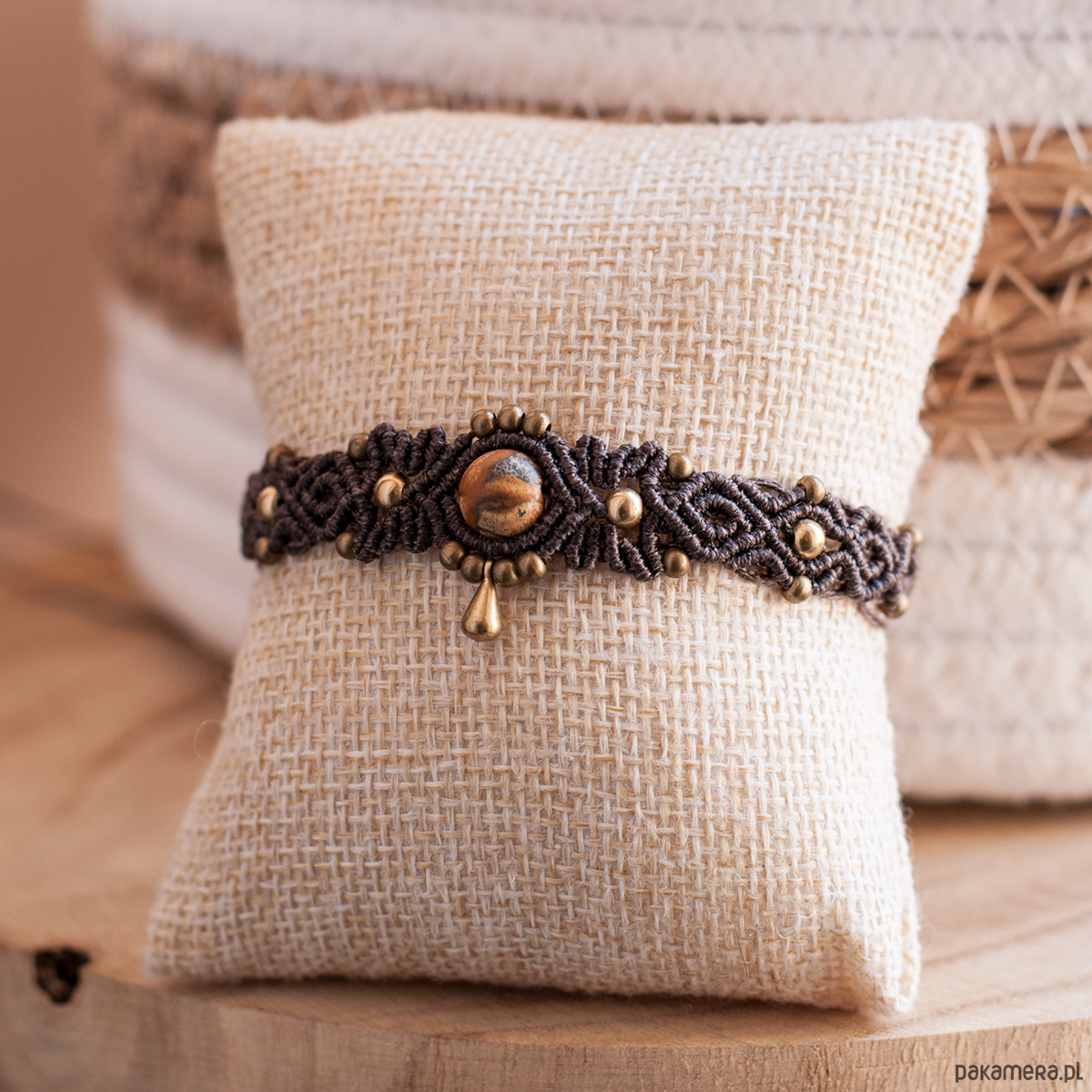 Brązowa Makramowa Bransoletka Kamienie Naturalne Jaspis