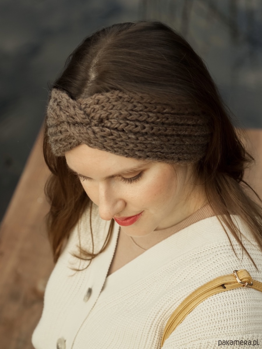 Brązowa opaska merino + alpaka należy do najnowszej kolekcji opasek o grubszej strukturze niż dotychczasowe opaski w ofercie.