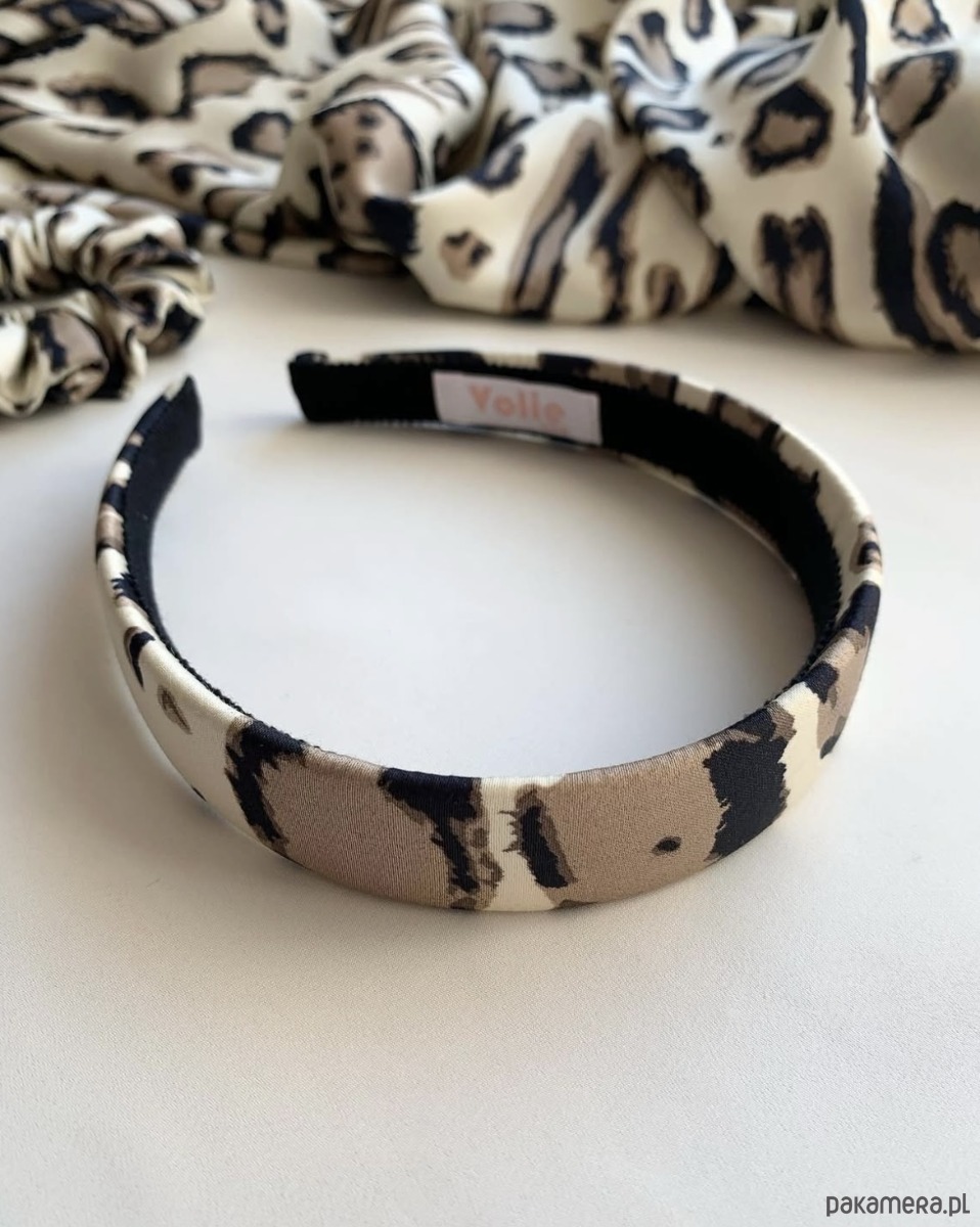 Płaska opaska do włosów Magdalena w odcieniach beżu, bieli i czerni