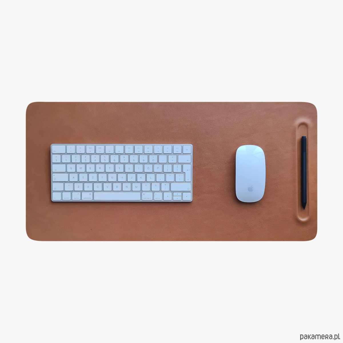 Lekka faktura powierzchni skóry sprawia, że dobrze reaguje na wszystkie typy myszy komputerowych. W zestawie znajduje się umieszczona u góry zintegrowana podstawka na pióro, która może pomieścić wiele przyborów do pisania i małe akcesoria na biurko, zapewniając lepszą organizację miejsca pracy.