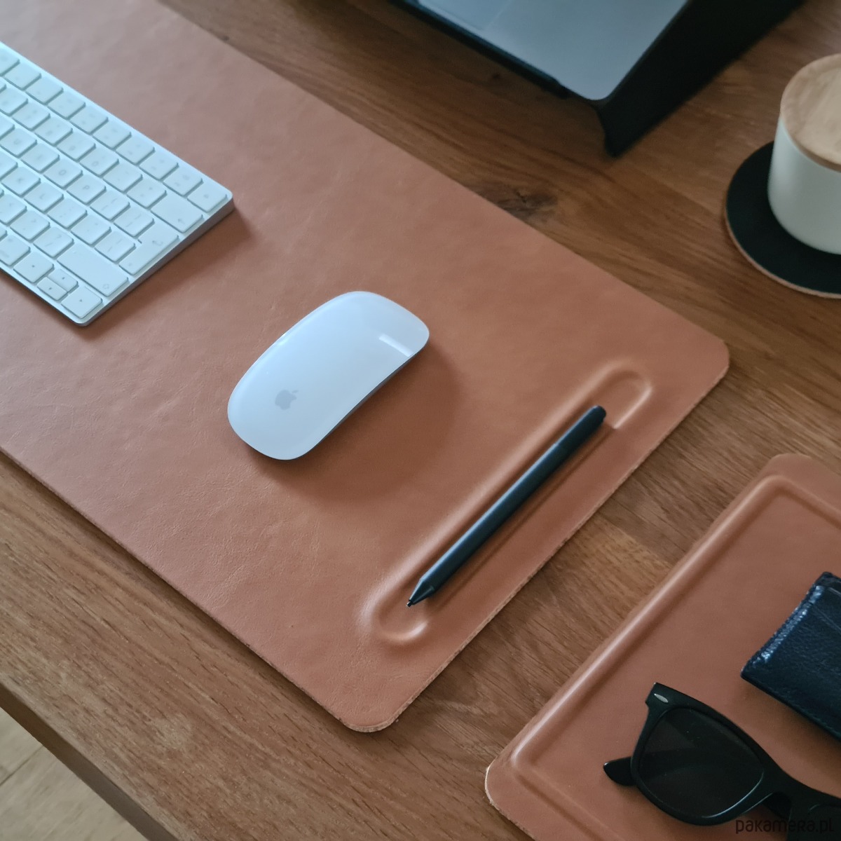 Brązowa skórzana mata pod klawiaturę