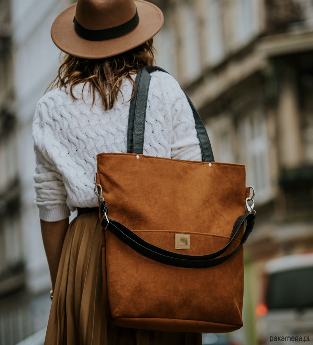 Materiał wierzchni: fantastycznej jakości gruby, wodoodporny, włoski zamsz ekologiczny typu Bukara. Łatwy w utrzymaniu czystości, wytrzymały na ścieranie. Rączki i długi pasek skóra ekologiczna.